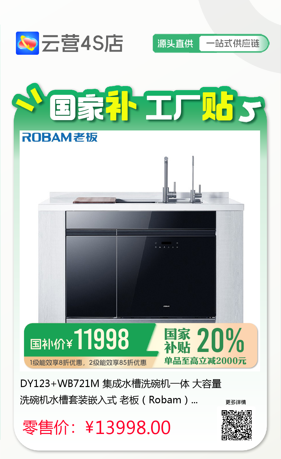 DY123+WB721M 集成水槽洗碗机一体 大容量洗碗机水槽套装嵌入式 老板(Robam)