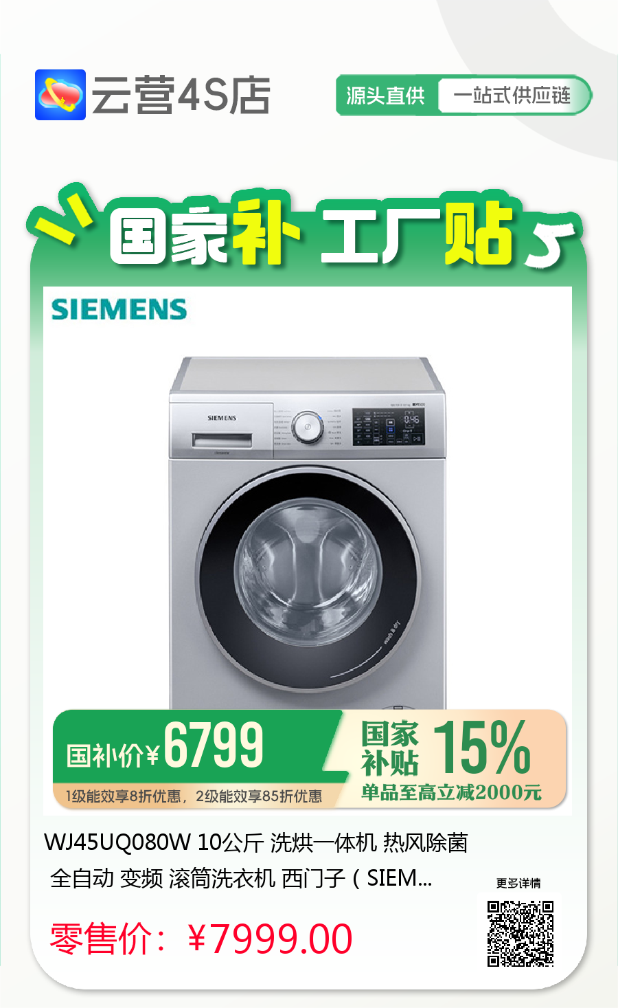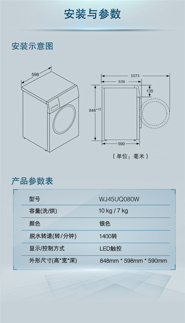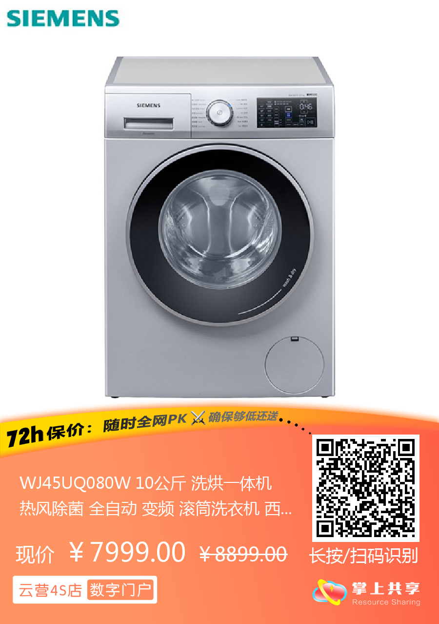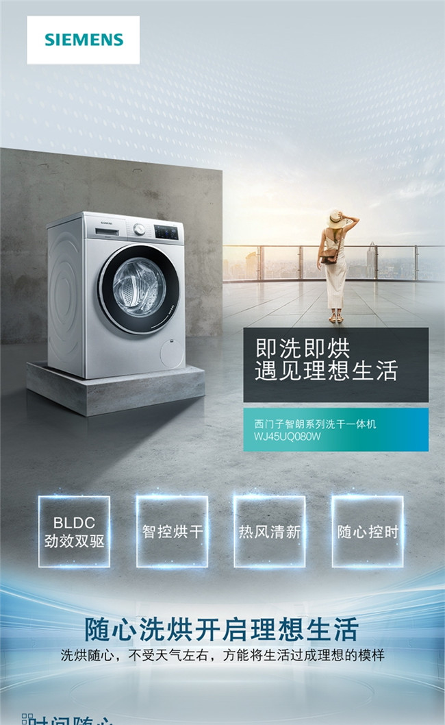 WJ45UQ080W 10公斤 洗烘一体机 热风除菌 全自动 变频 滚筒洗衣机 西门子(SIEMENS)
