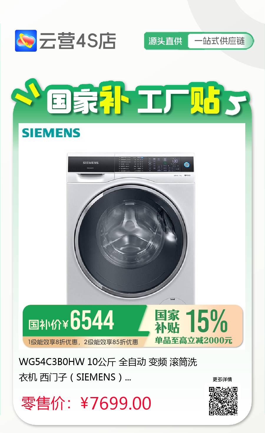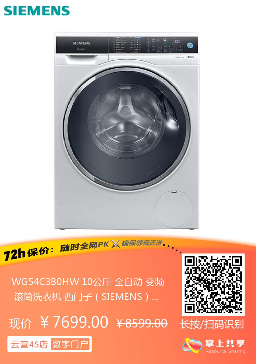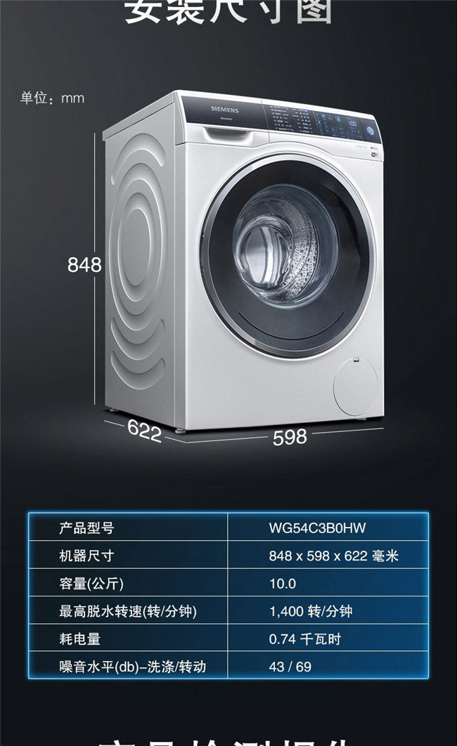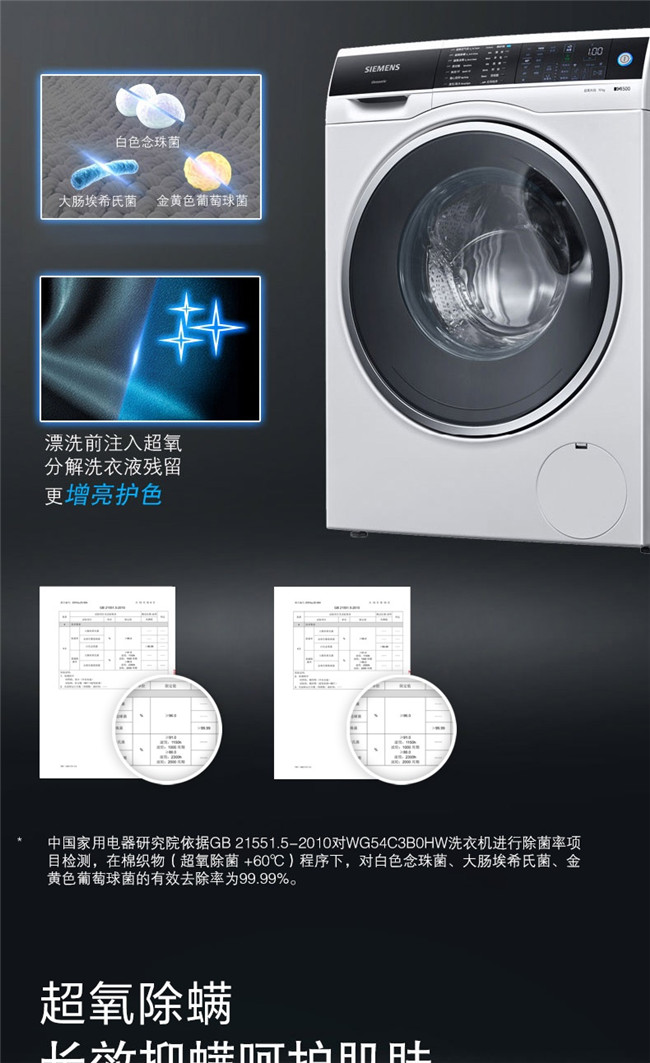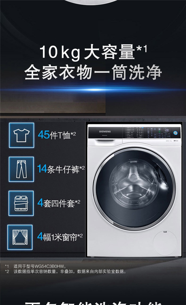 WG54C3B0HW 10公斤 全自动 变频 滚筒洗衣机 西门子(SIEMENS)