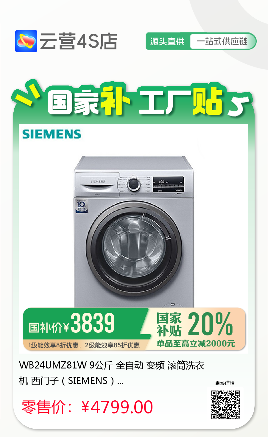 WB24UMZ81W 9公斤 全自动 变频 滚筒洗衣机 西门子(SIEMENS)