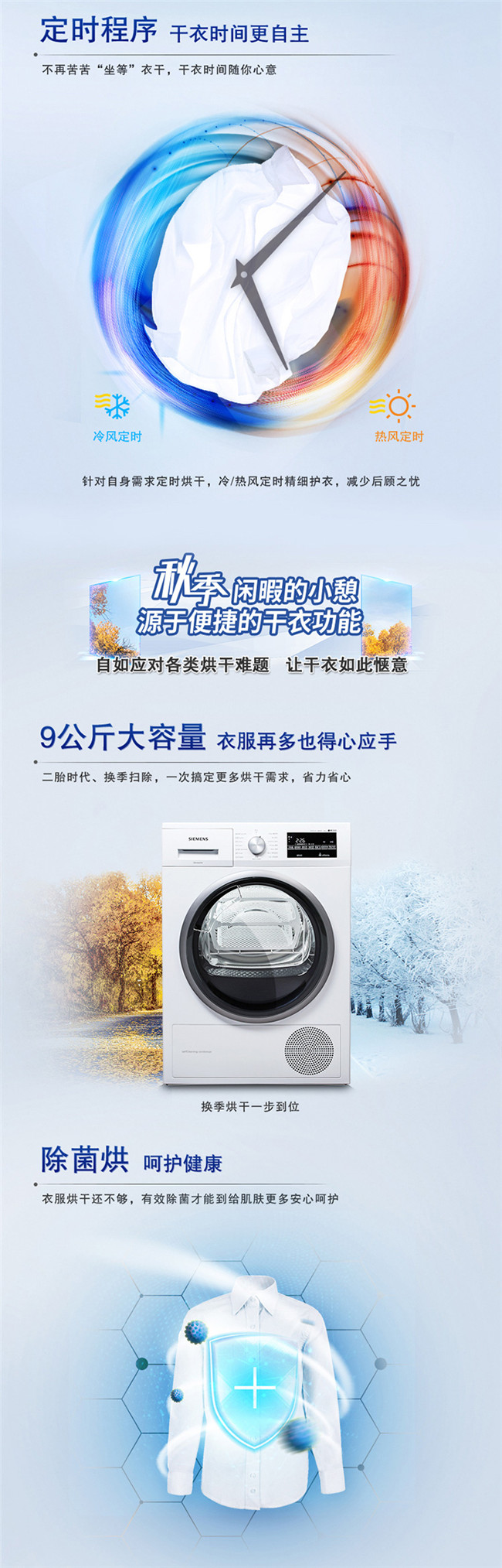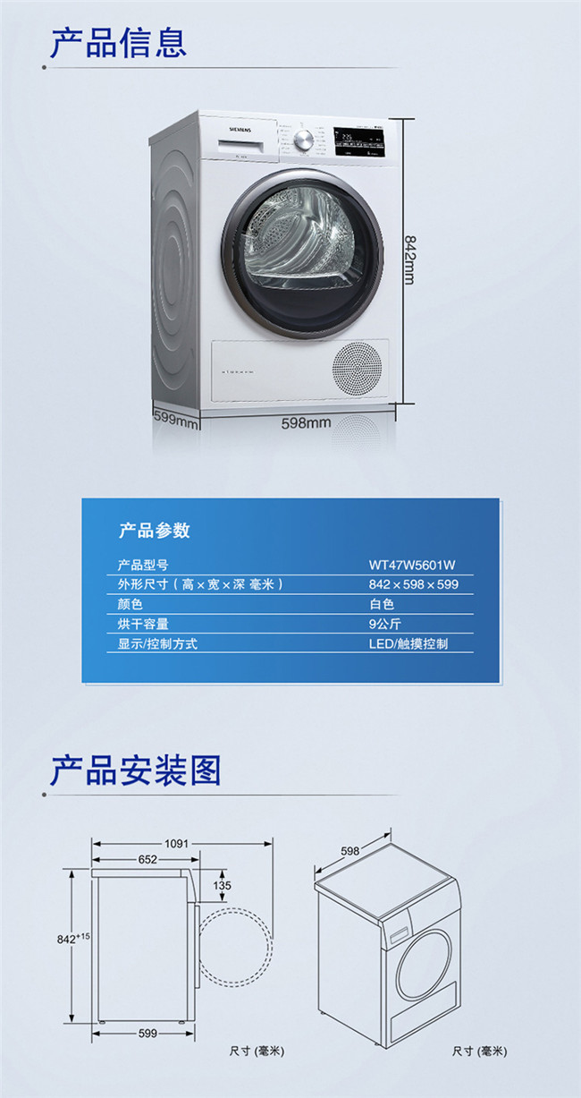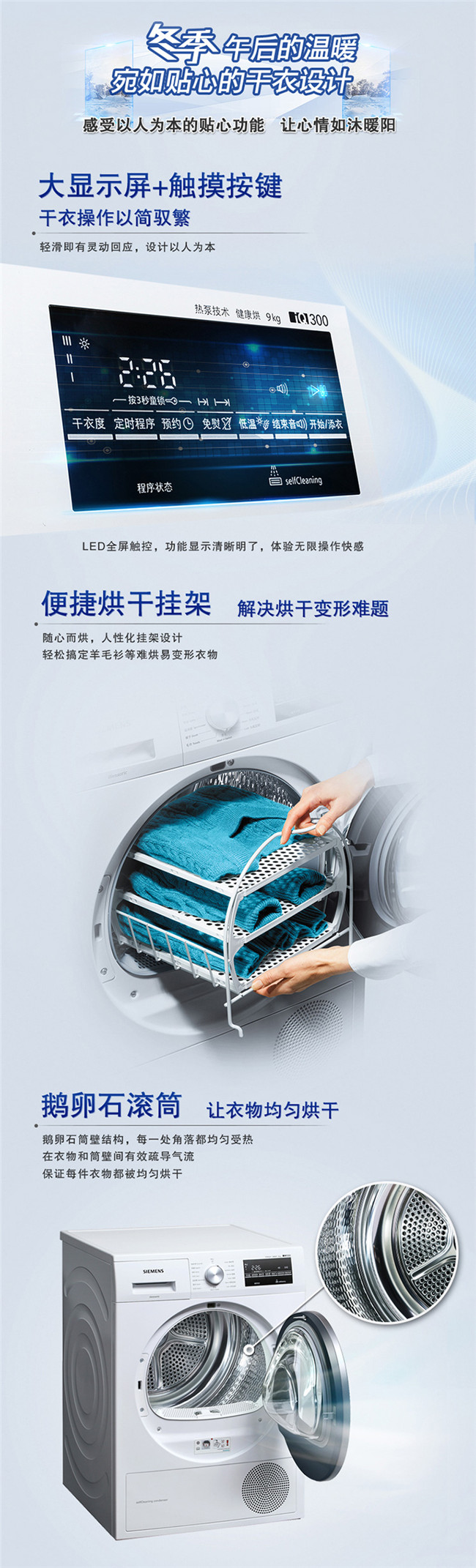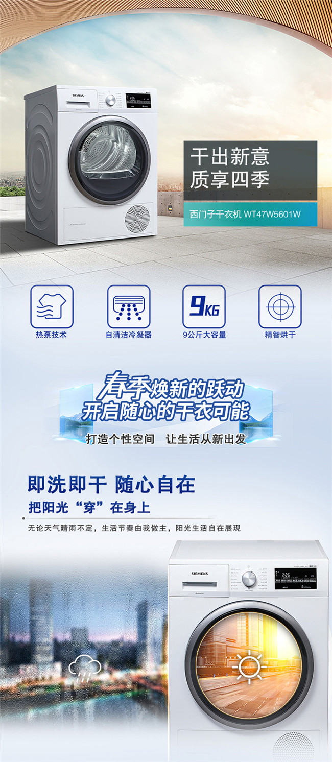 WT47W5601W 9公斤 全自动 变频 滚筒干衣机 西门子(SIEMENS)