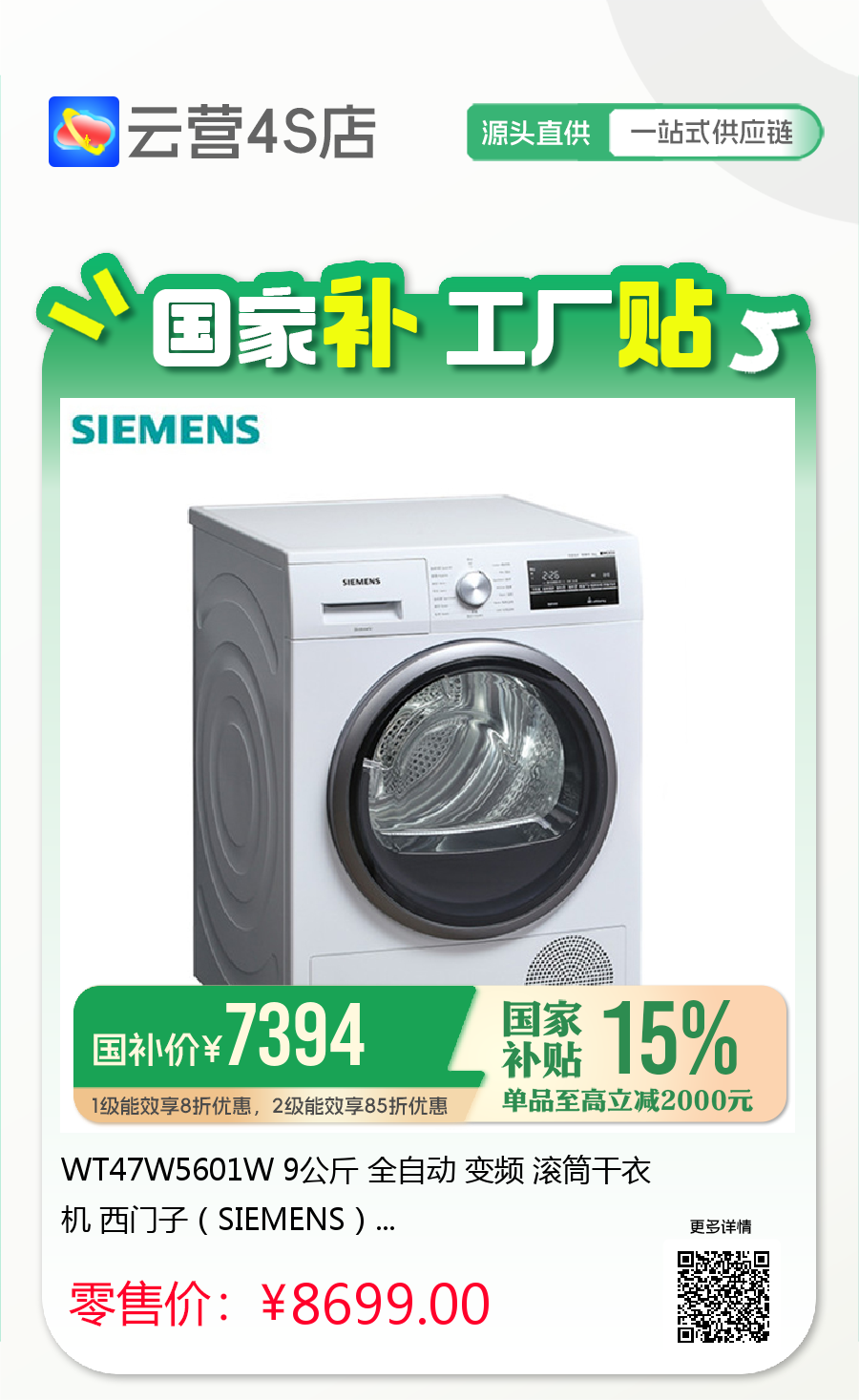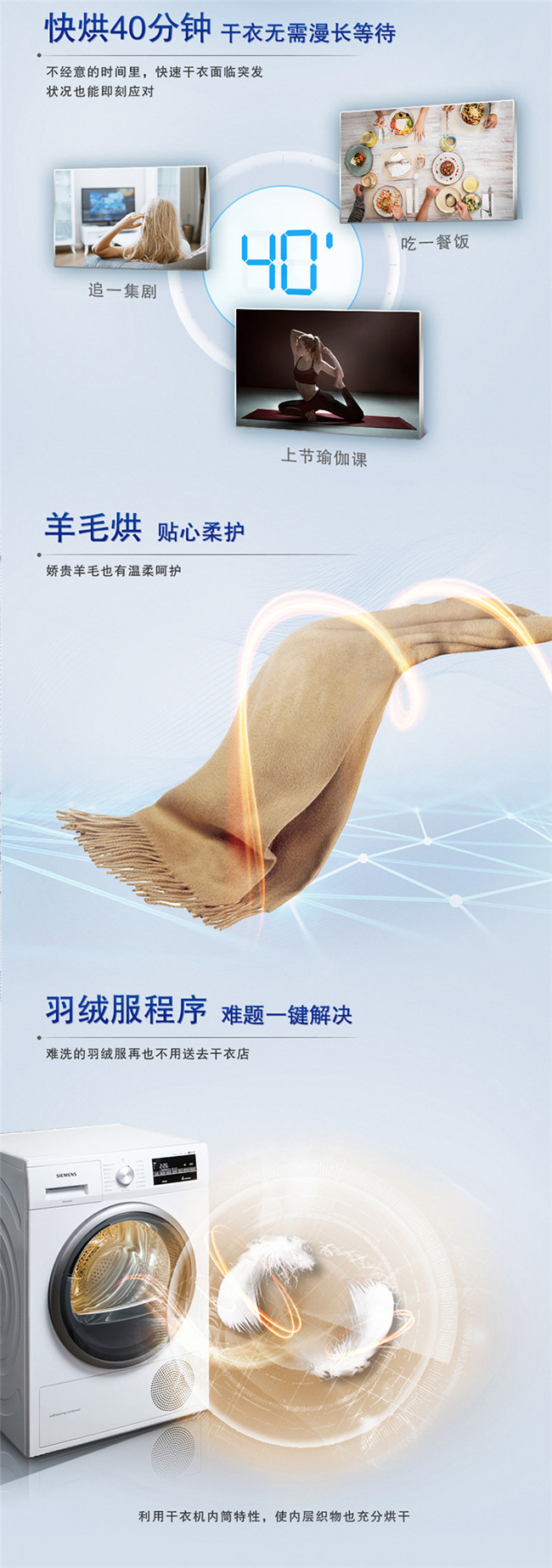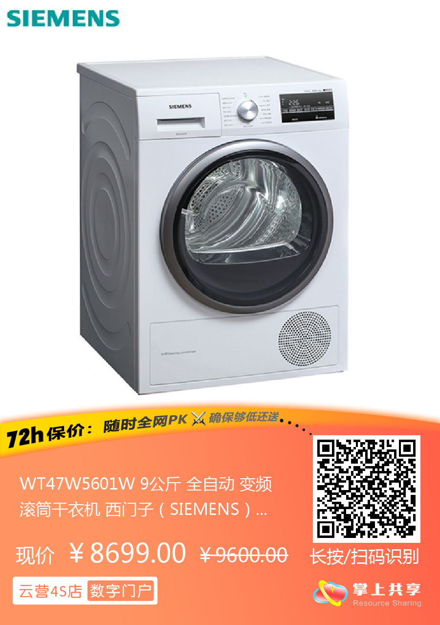 WT47W5601W 9公斤 全自动 变频 滚筒干衣机 西门子(SIEMENS)