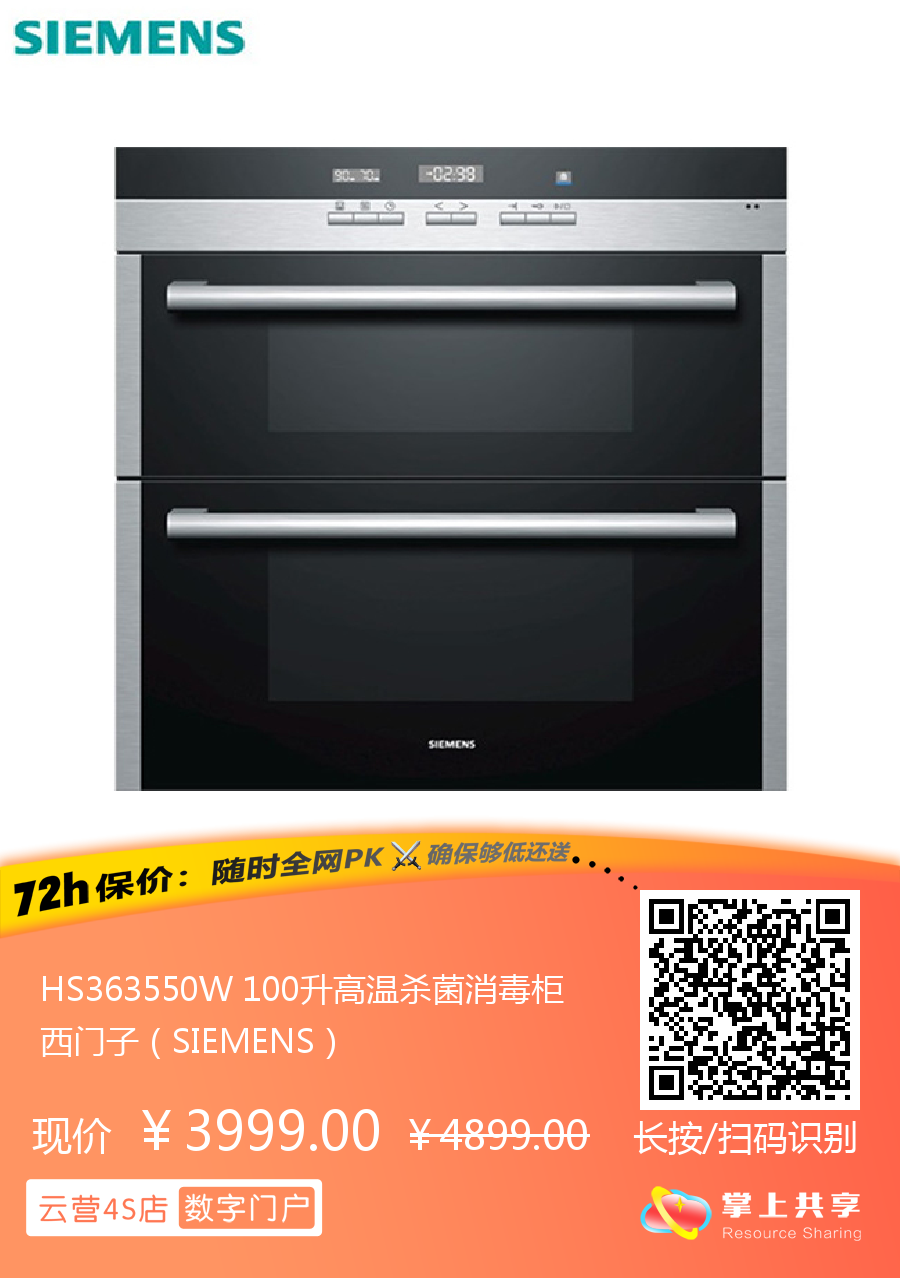HS363550W 100升高温杀菌消毒柜 西门子(SIEMENS)