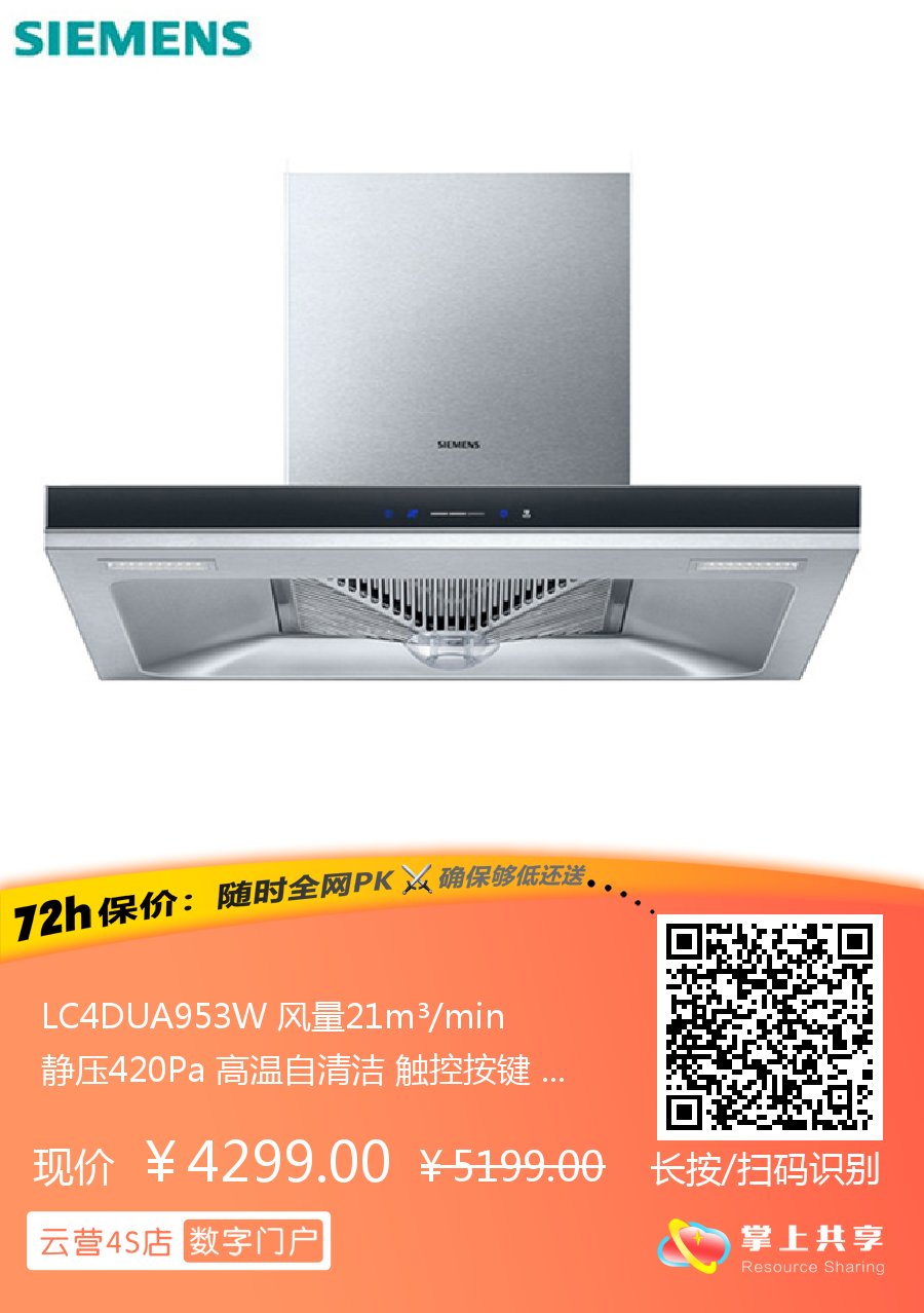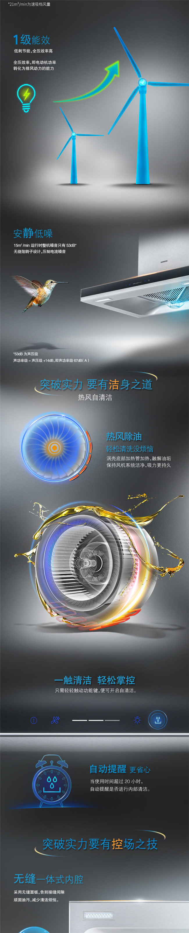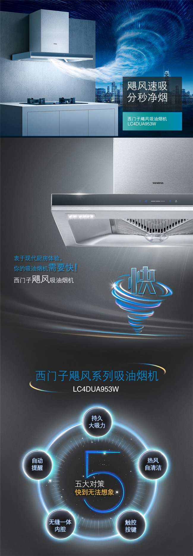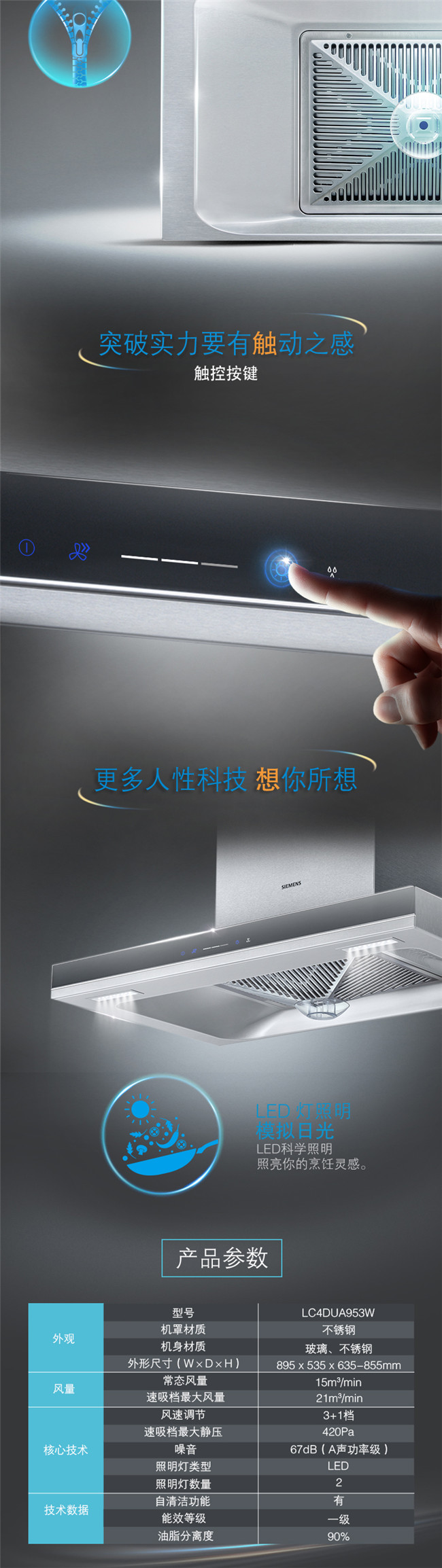 LC4DUA953W 风量21m³/min 静压420Pa 高温自清洁 触控按键 1级能效 欧式
