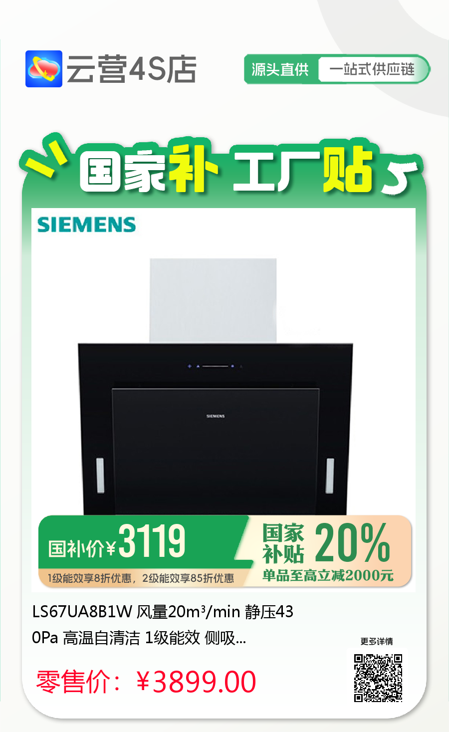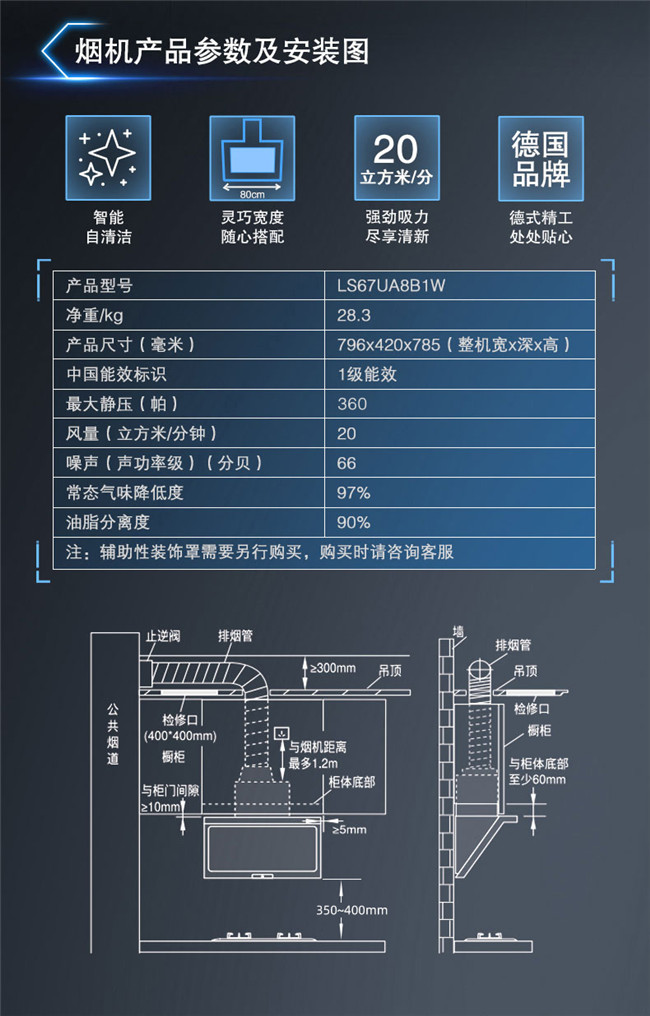 LS67UA8B1W 风量20m³/min 静压430Pa 高温自清洁 1级能效 侧吸