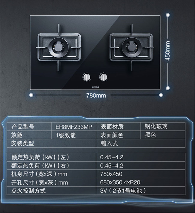 ER8MF233MP 双眼灶 嵌入式燃气灶 天然气