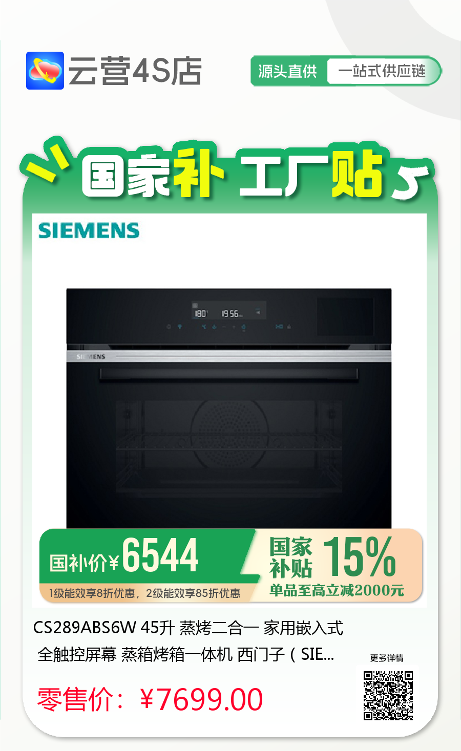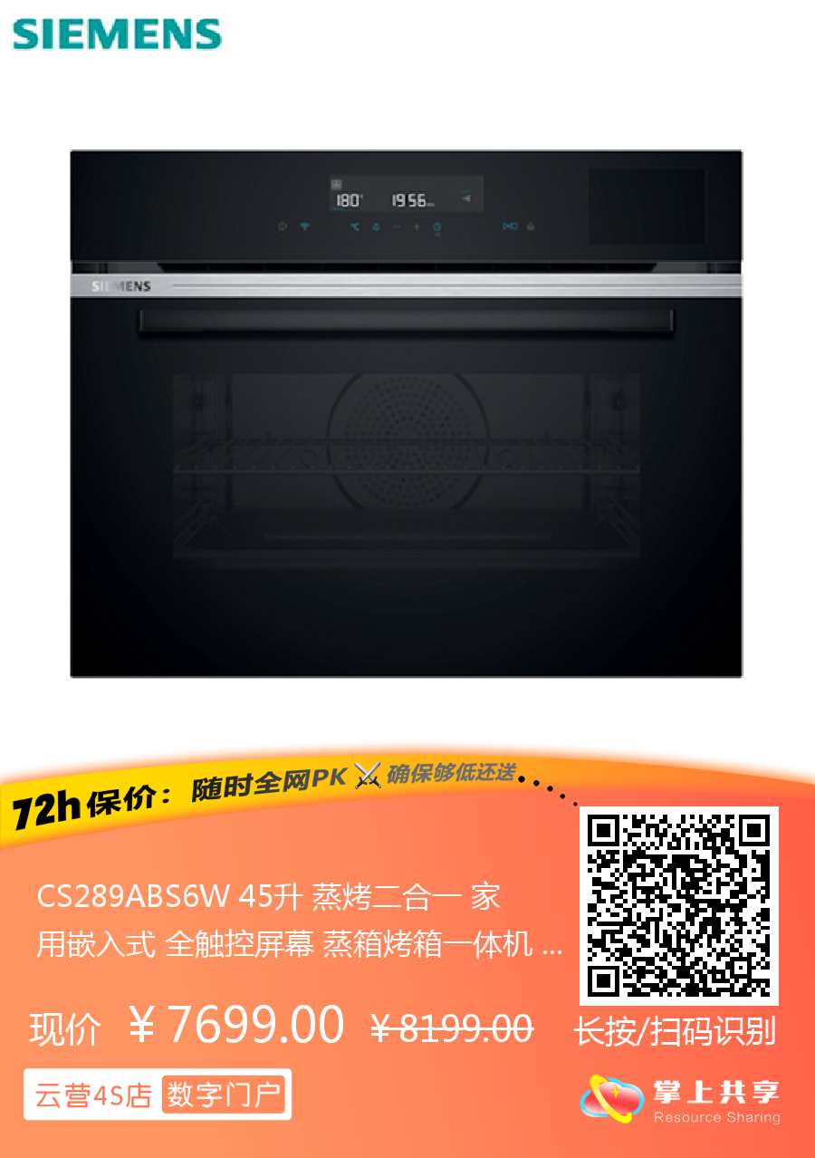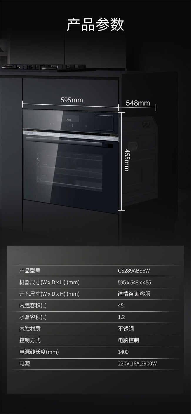 CS289ABS6W 45升 蒸烤二合一 家用嵌入式 全触控屏幕 蒸箱烤箱一体机 西门子(SIEMENS)