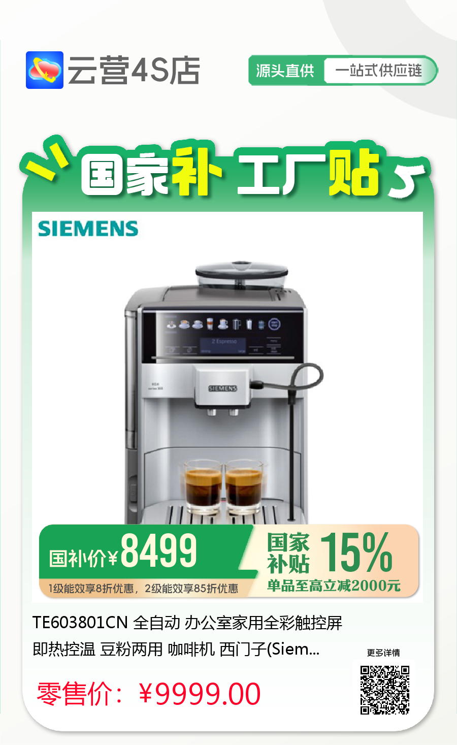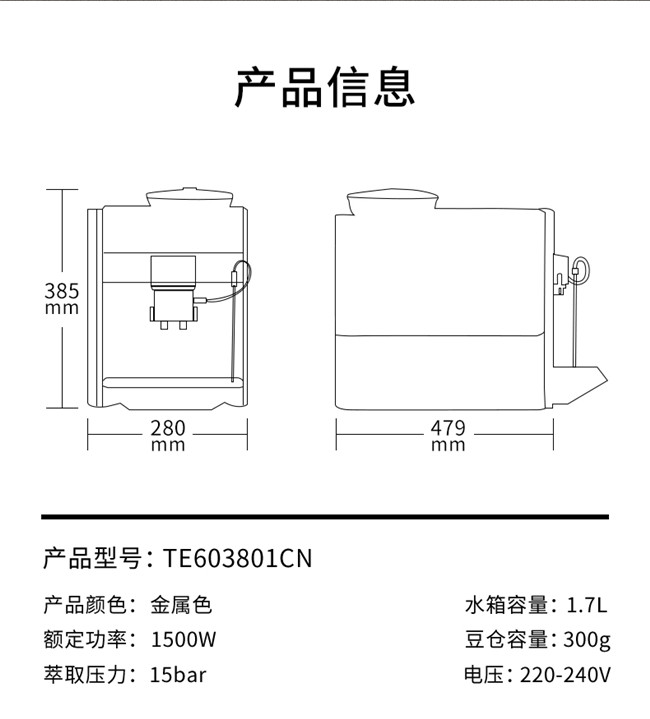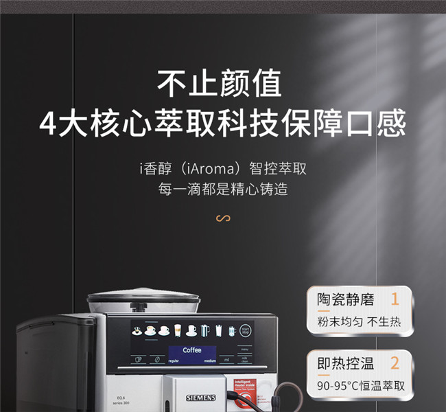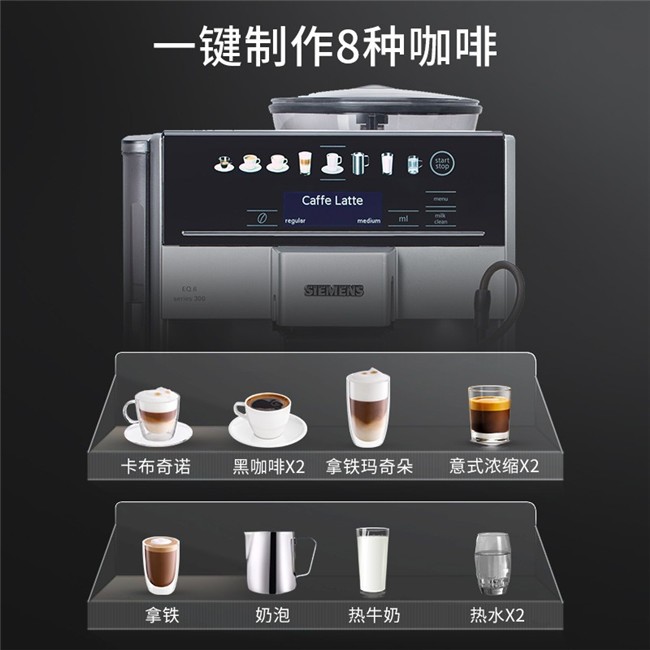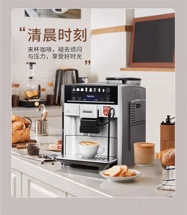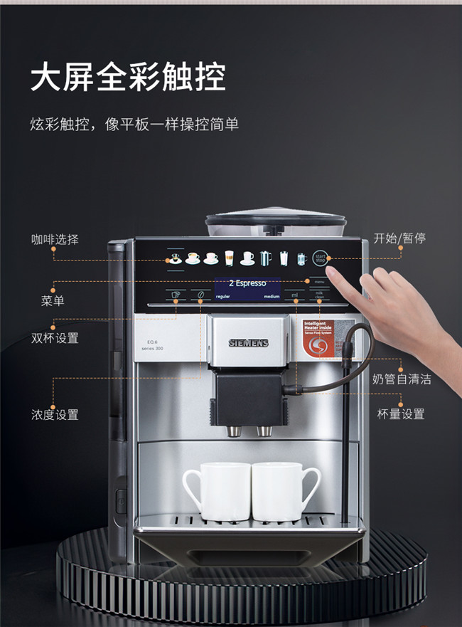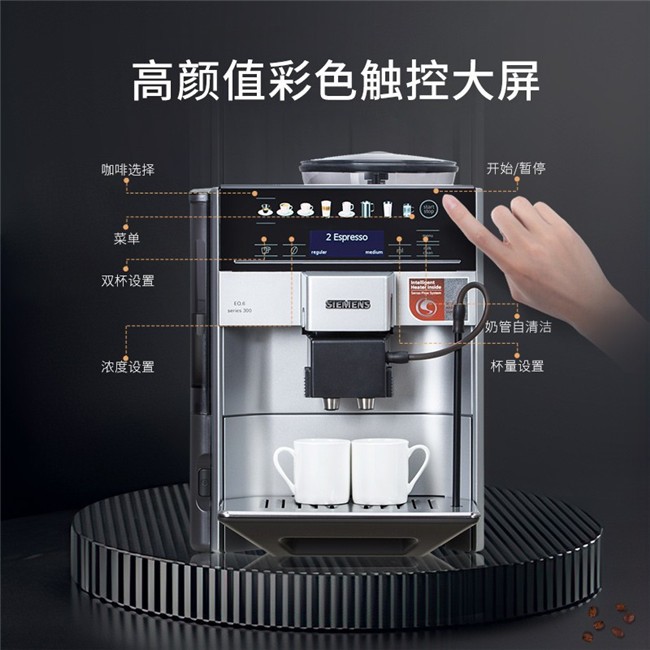 TE603801CN 全自动 办公室家用全彩触控屏 即热控温 豆粉两用 咖啡机 西门子(Siemens)