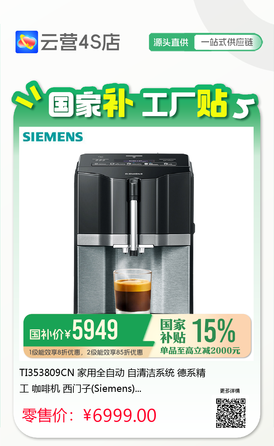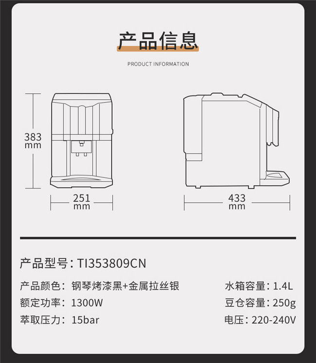 TI353809CN 家用全自动 自清洁系统 德系精工 咖啡机 西门子(Siemens)