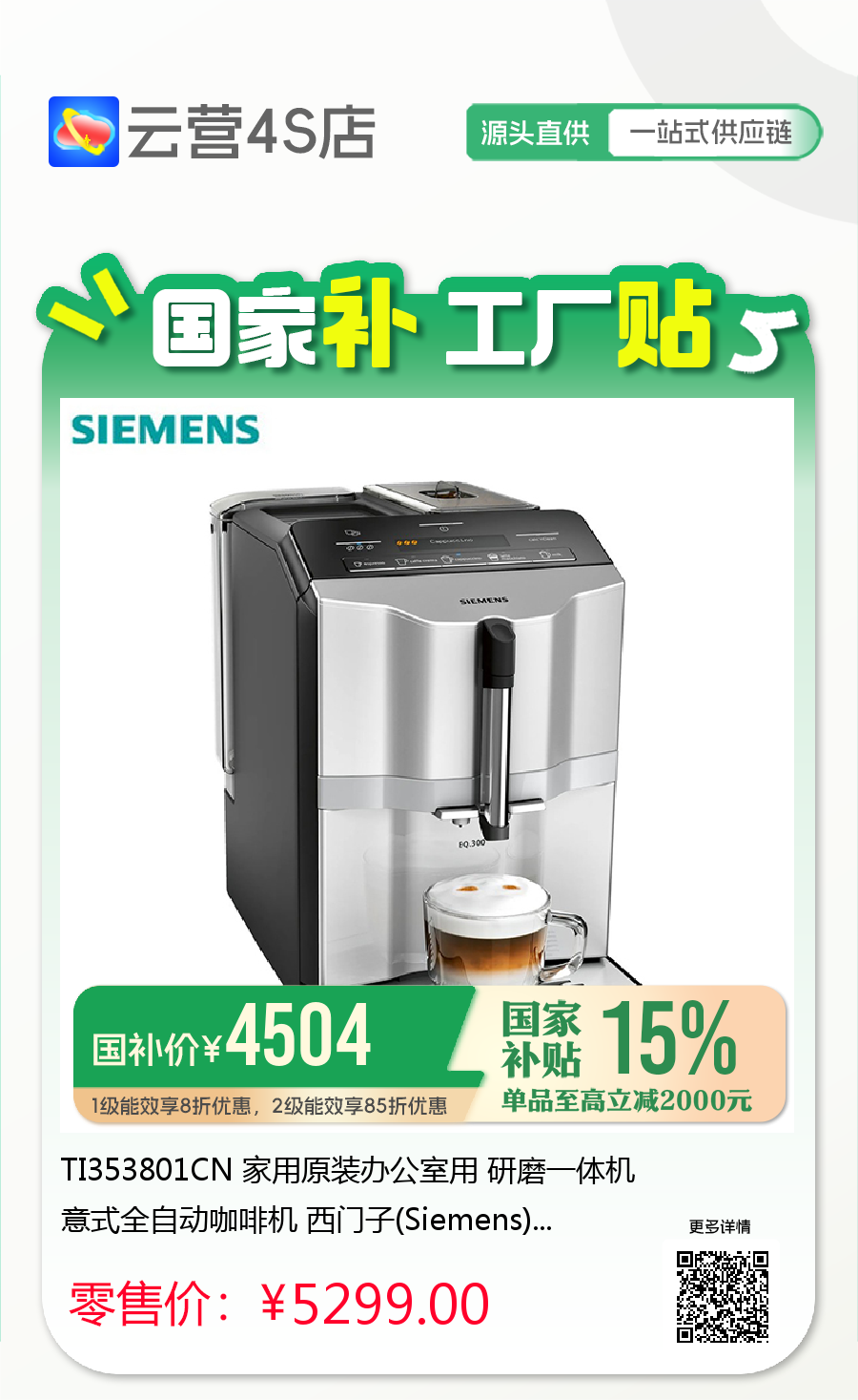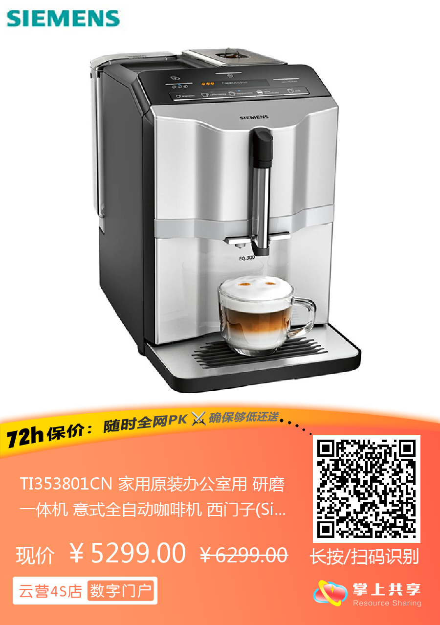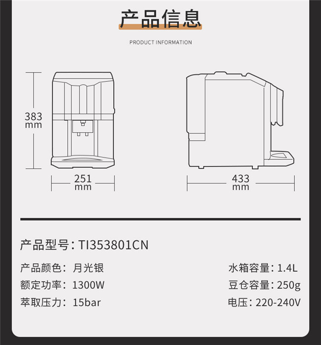 TI353801CN 家用原装办公室用 研磨一体机 意式全自动咖啡机 西门子(Siemens)