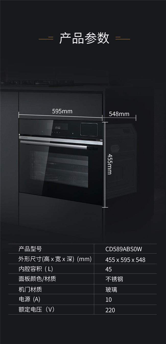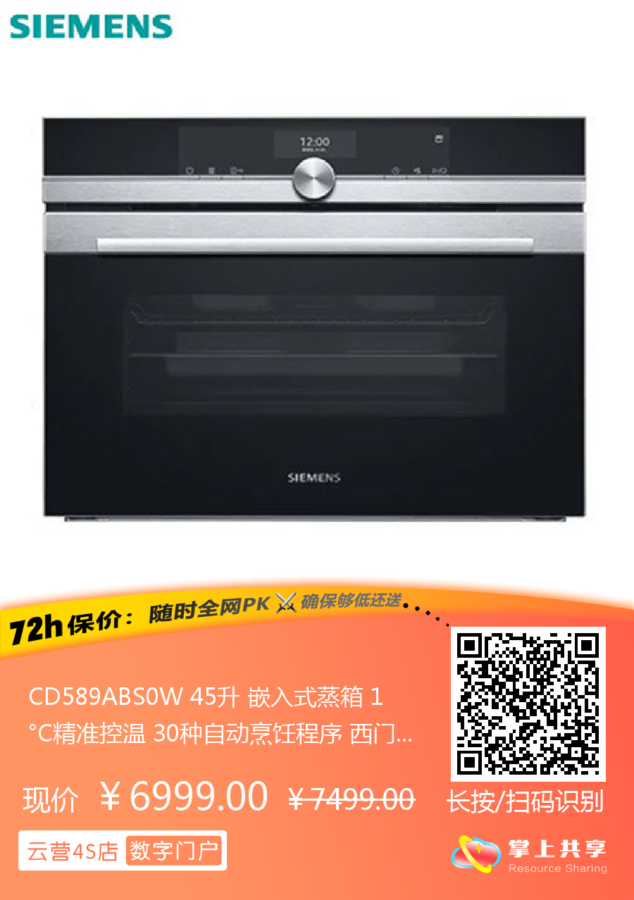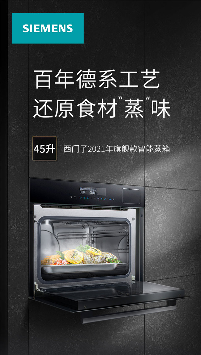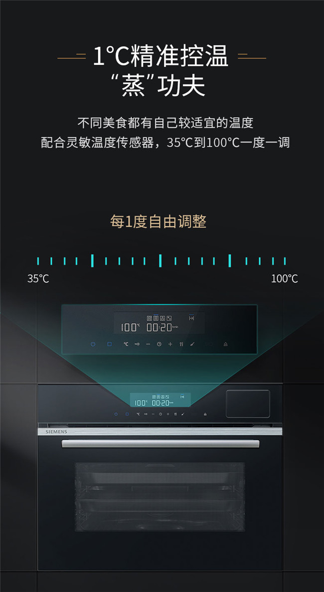 CD589ABS0W 45升 嵌入式蒸箱 1°C精准控温 30种自动烹饪程序 西门子(SIEMENS)