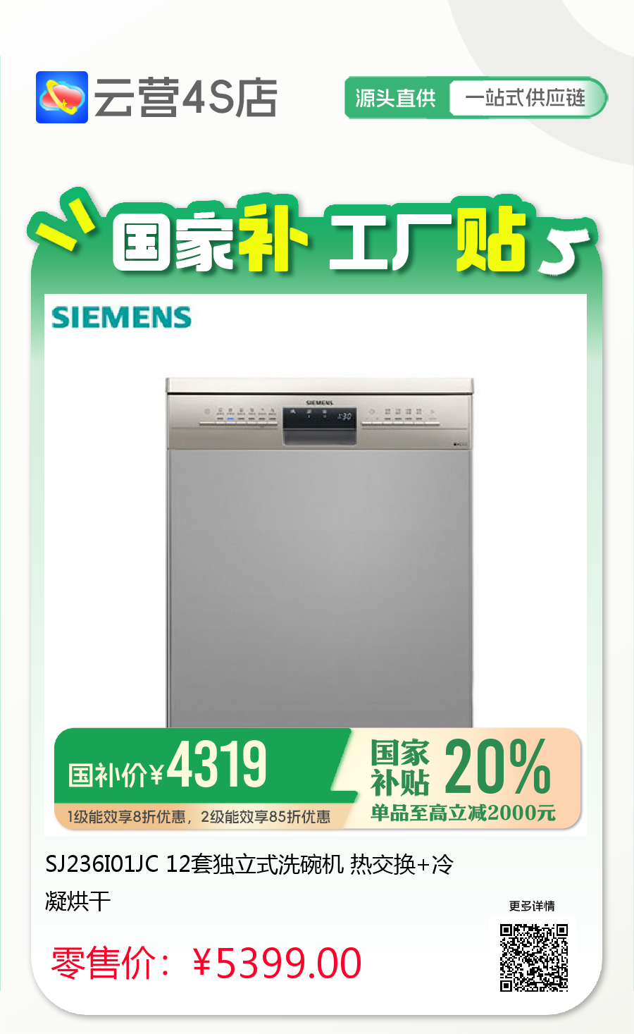 SJ236I01JC 12套独立式洗碗机 热交换+冷凝烘干