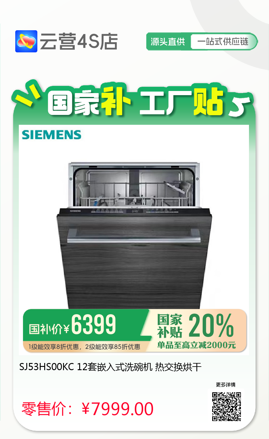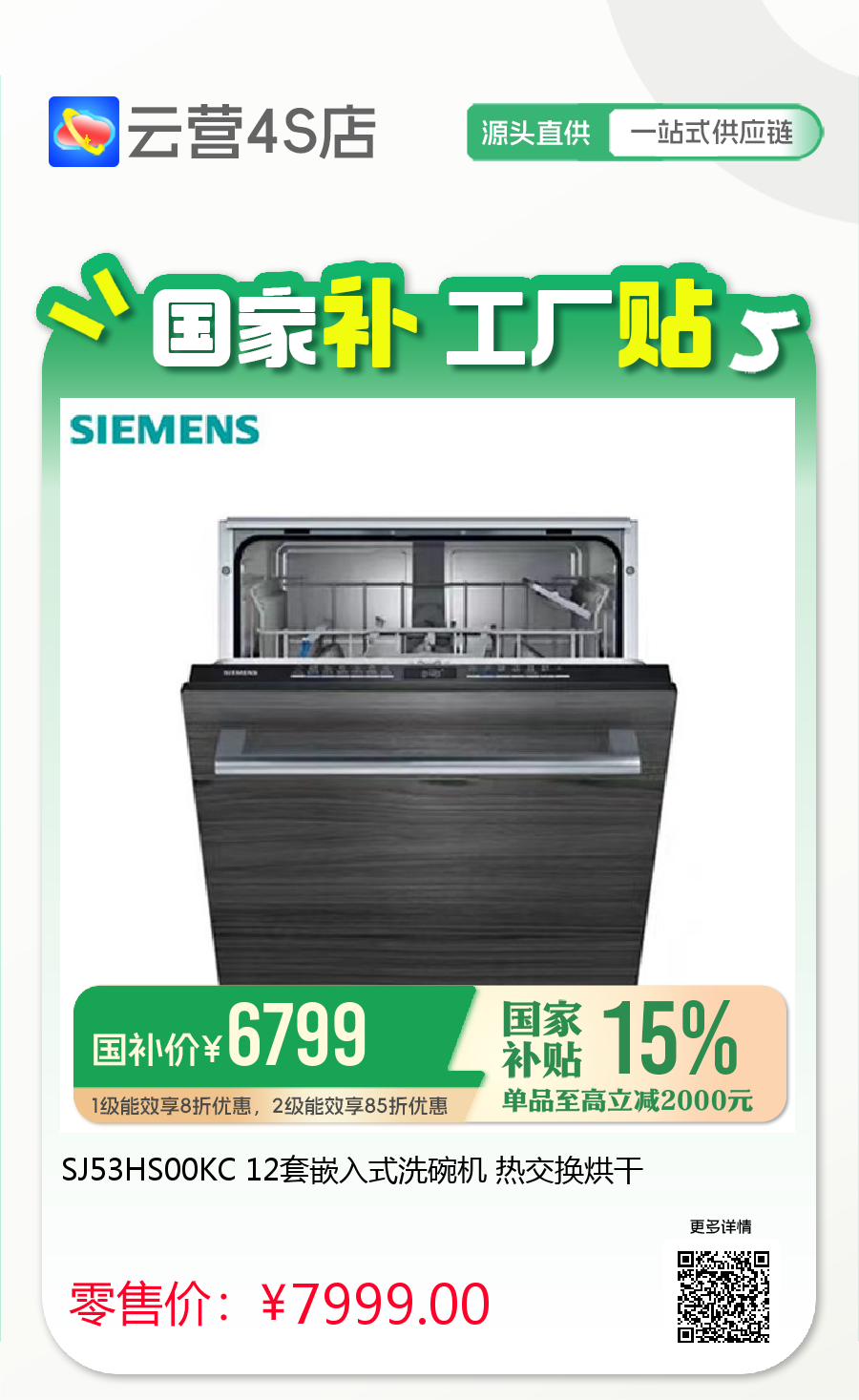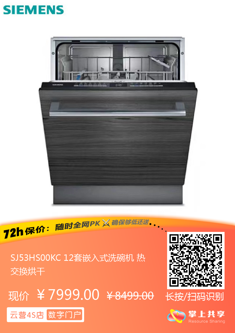 SJ53HS00KC 12套嵌入式洗碗机 热交换烘干