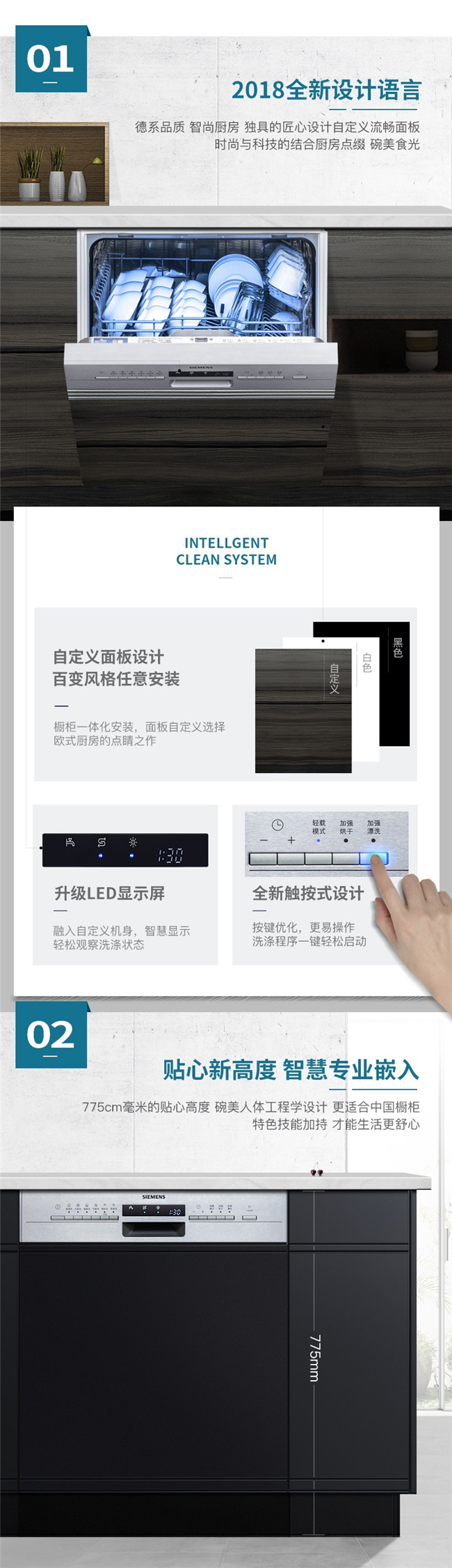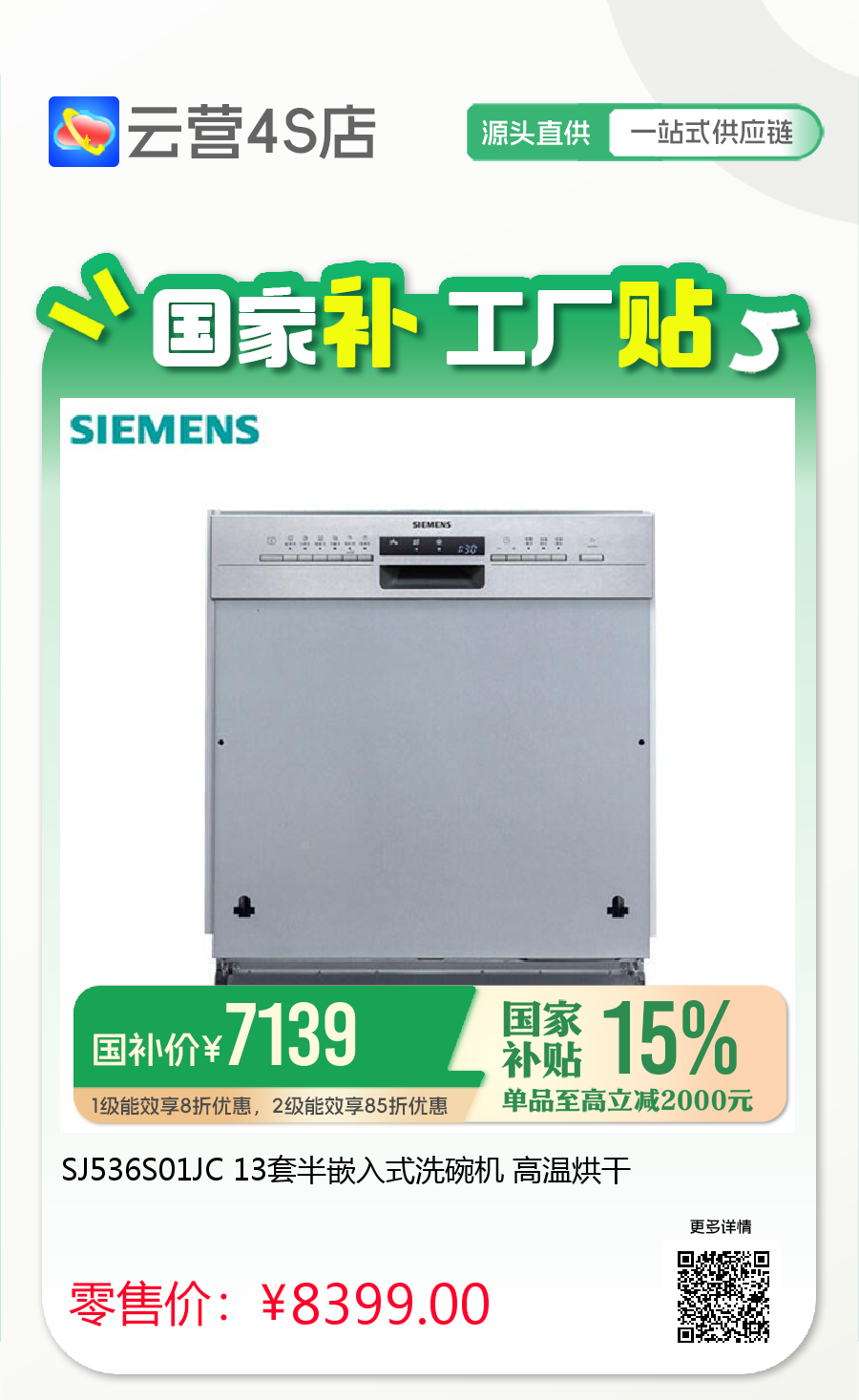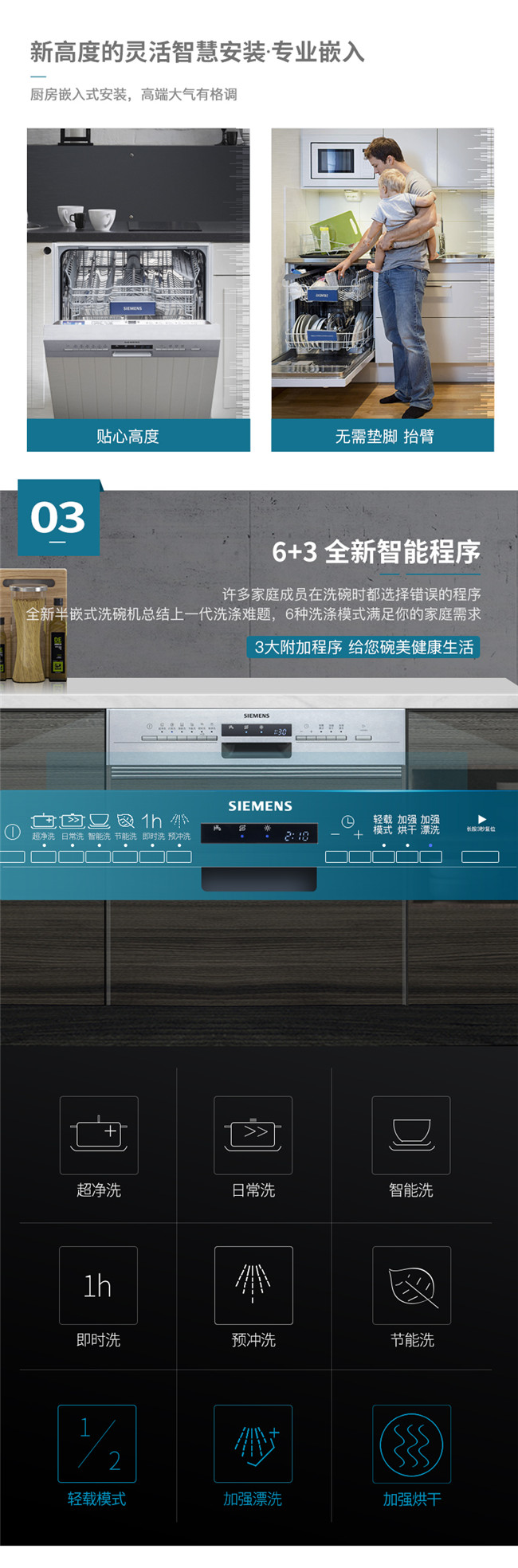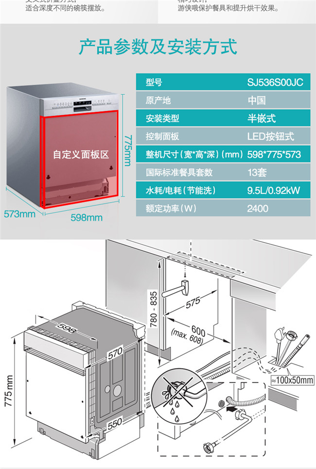 SJ536S01JC 13套半嵌入式洗碗机 高温烘干