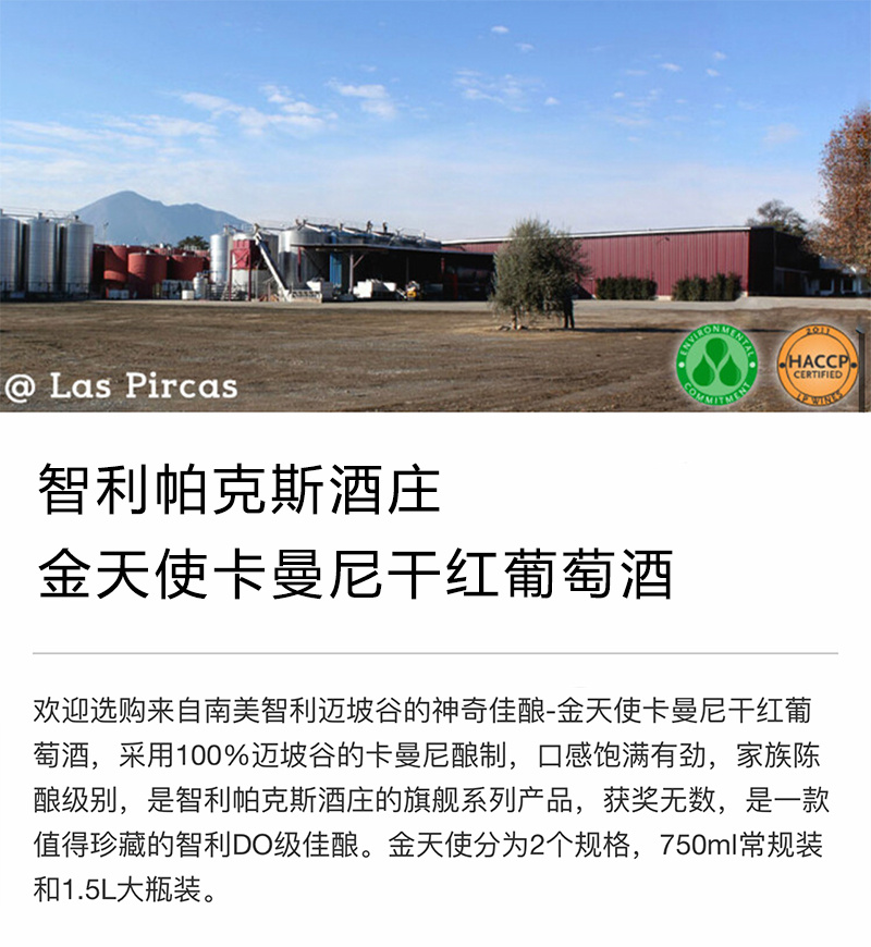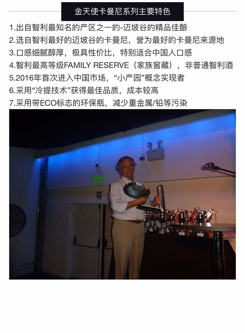 2020金天使佳美娜干红葡萄酒 智利迈坡谷庄园 14.0度 750ml 单支装