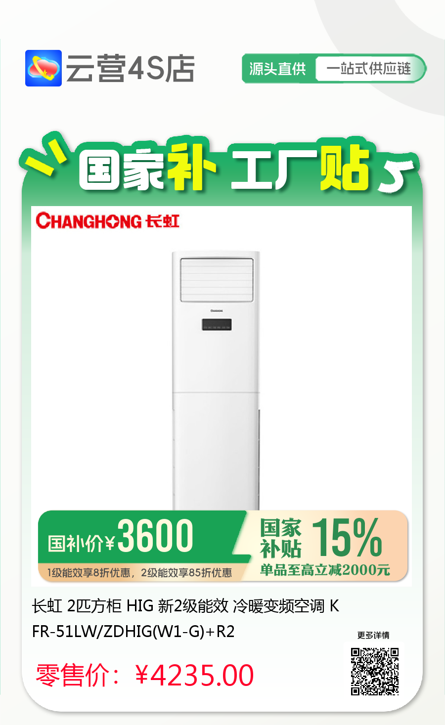 长虹 2匹方柜 HIG 新2级能效 冷暖变频空调 KFR-51LW/ZDHIG(W1-G)+R2