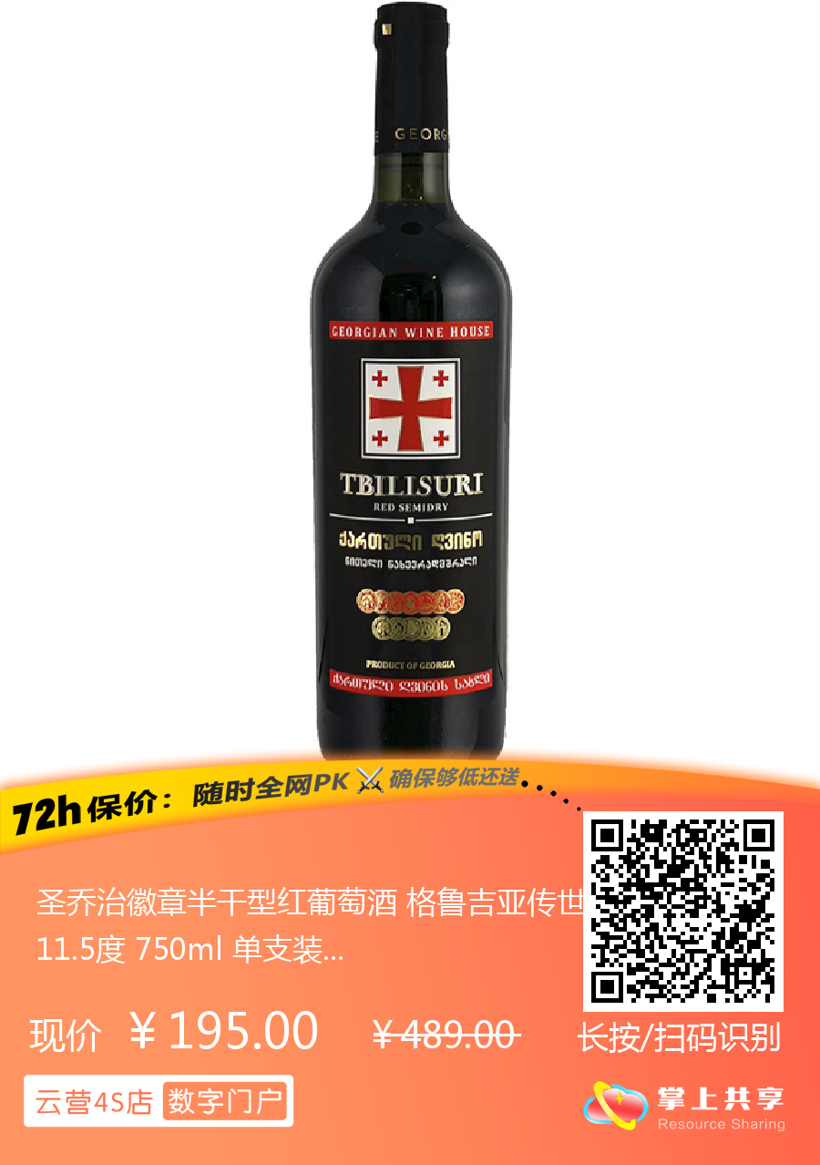 圣乔治徽章半干型红葡萄酒 格鲁吉亚传世酒窖 11.5度 750ml 单支装