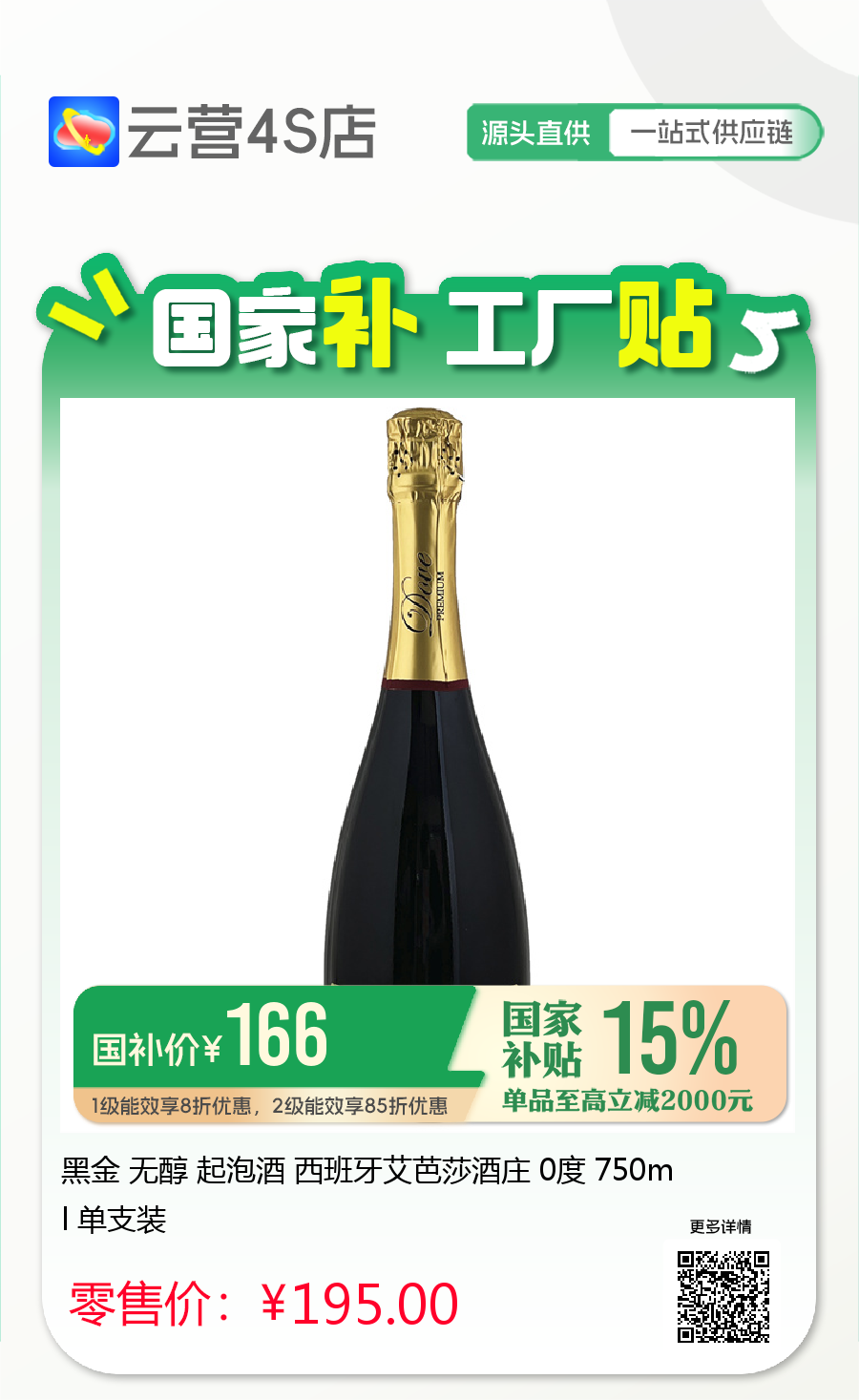 黑金 无醇 起泡酒 西班牙艾芭莎酒庄 0度 750ml 单支装