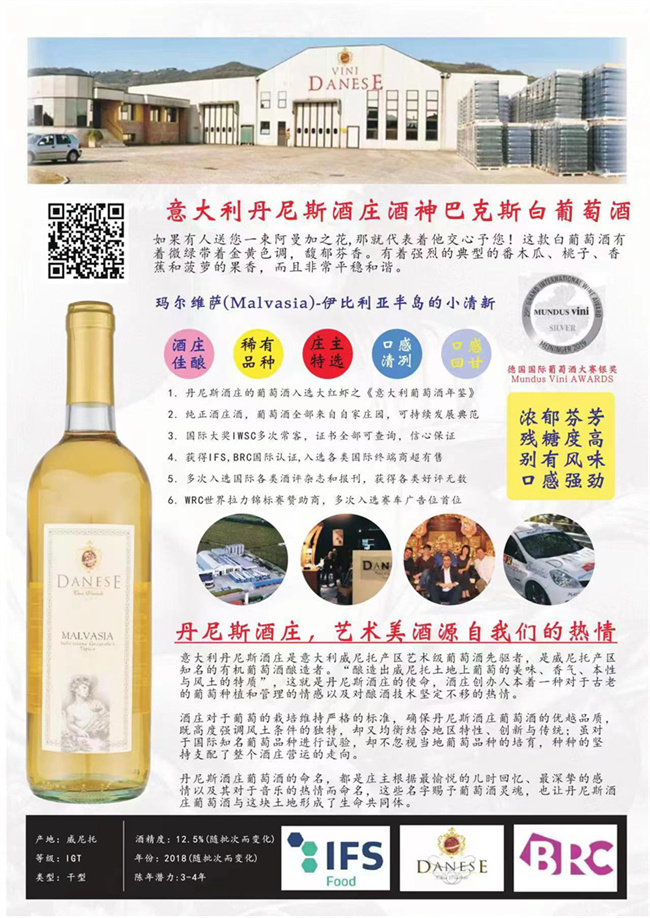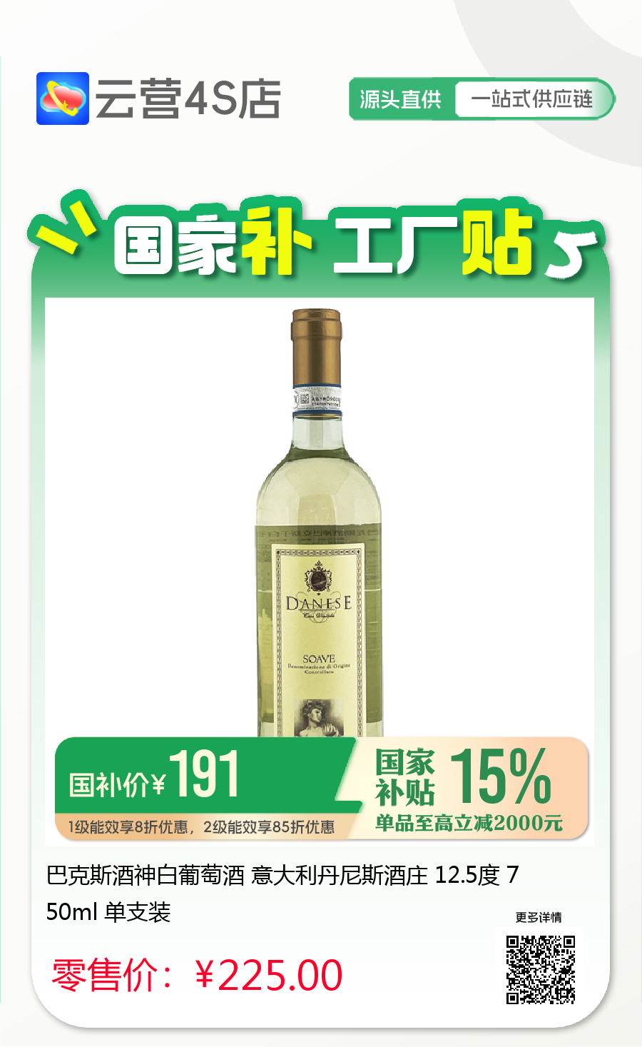 巴克斯酒神白葡萄酒 意大利丹尼斯酒庄 12.5度 750ml 单支装