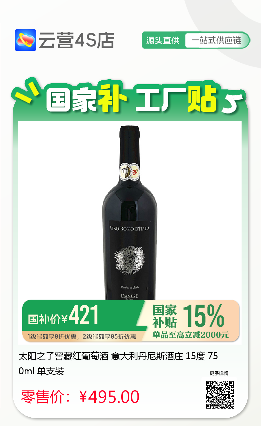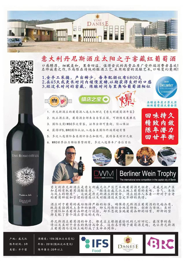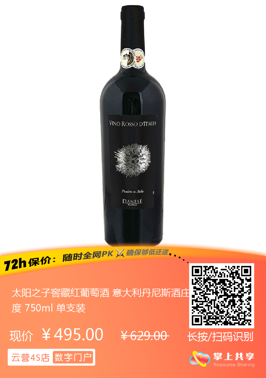 太阳之子窖藏红葡萄酒 意大利丹尼斯酒庄 15度 750ml 单支装