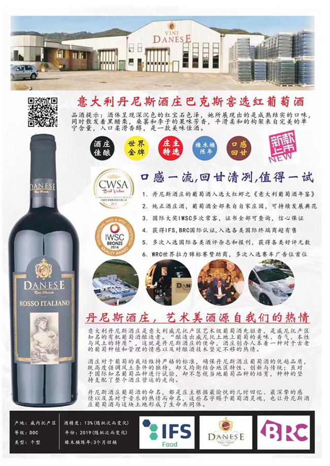 巴克斯窖藏红葡萄酒 意大利丹尼斯酒庄 13度 750ml 单支装