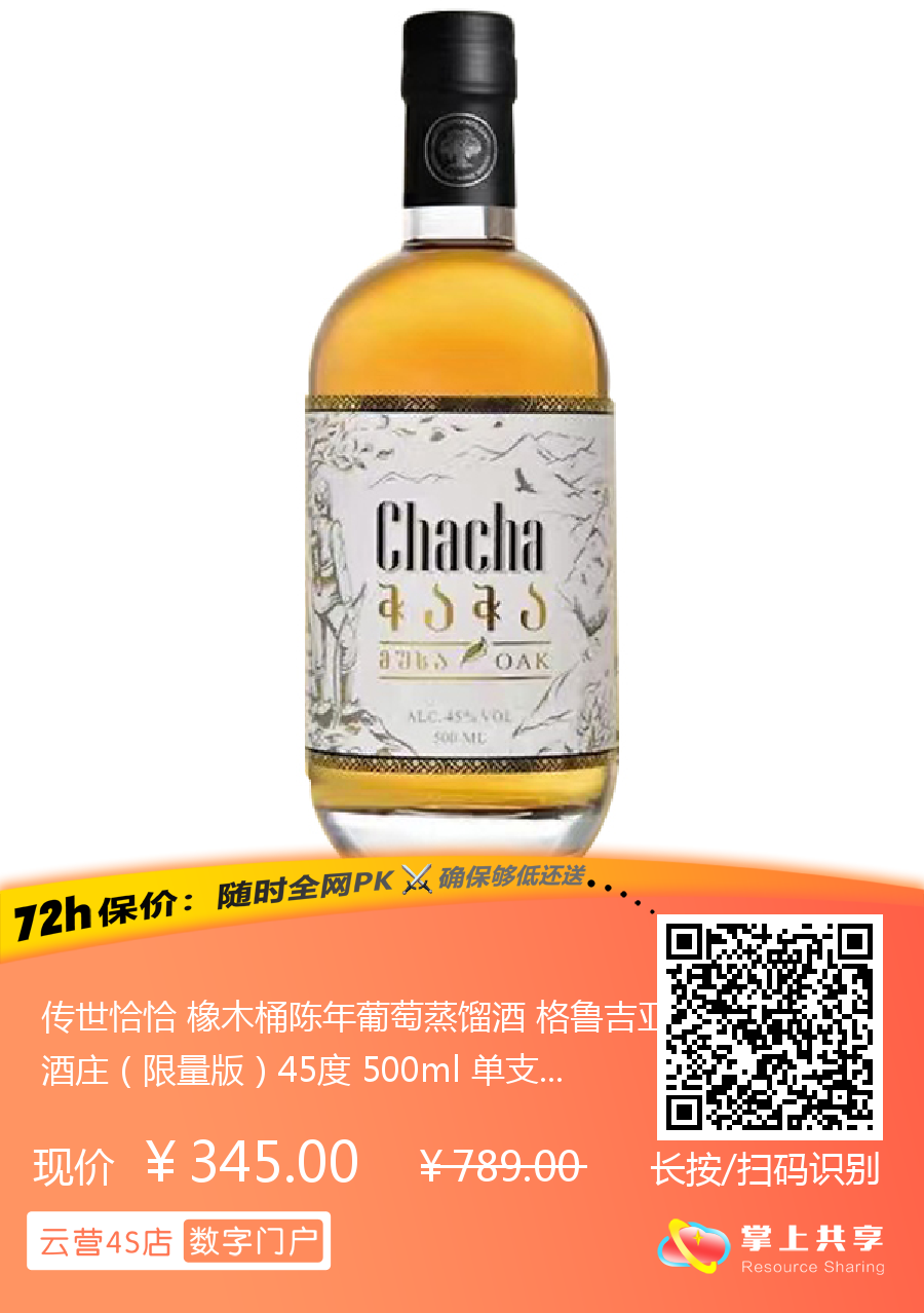 传世恰恰 橡木桶陈年葡萄蒸馏酒 格鲁吉亚传世酒庄(限量版)45度 500ml 单支装