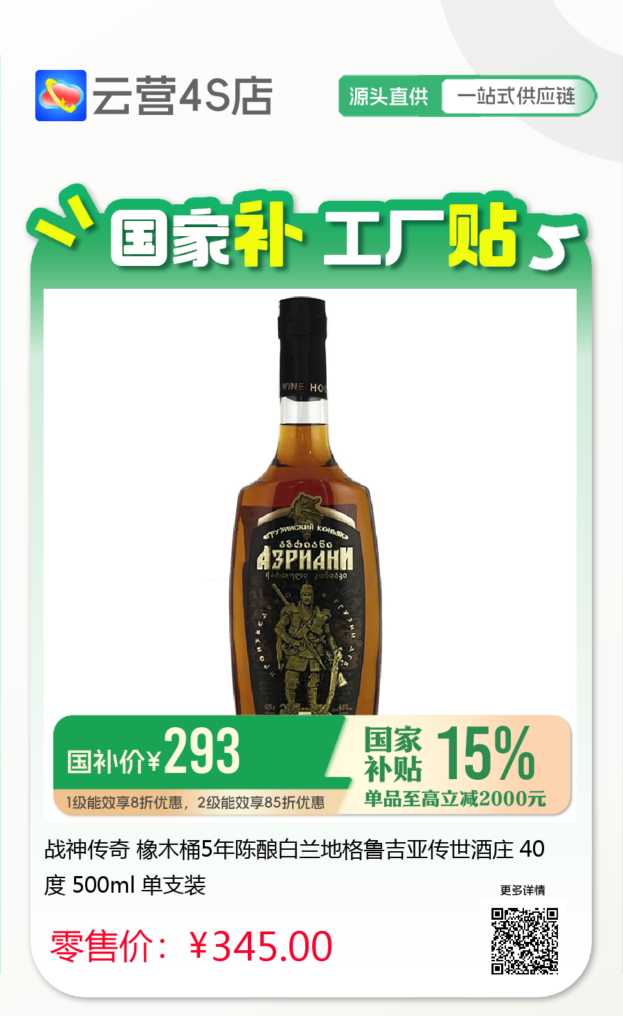 战神传奇 橡木桶5年陈酿白兰地格鲁吉亚传世酒庄 40度 500ml 单支装