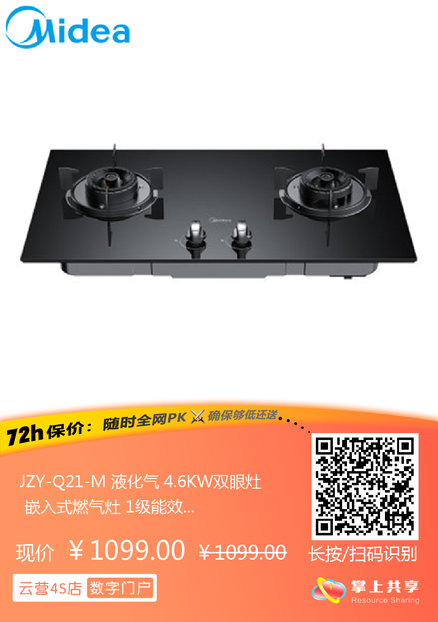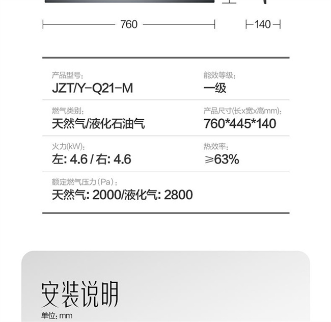 JZY-Q21-M 液化气 4.6KW双眼灶 嵌入式燃气灶 1级能效