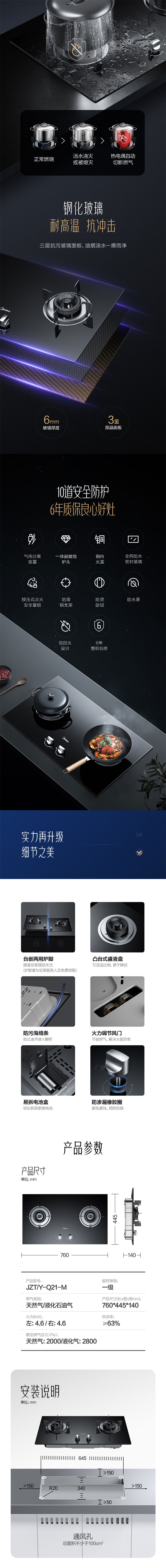 JZT-Q21-M 天然气 4.6KW双眼灶 台嵌两用燃气灶 1级能效