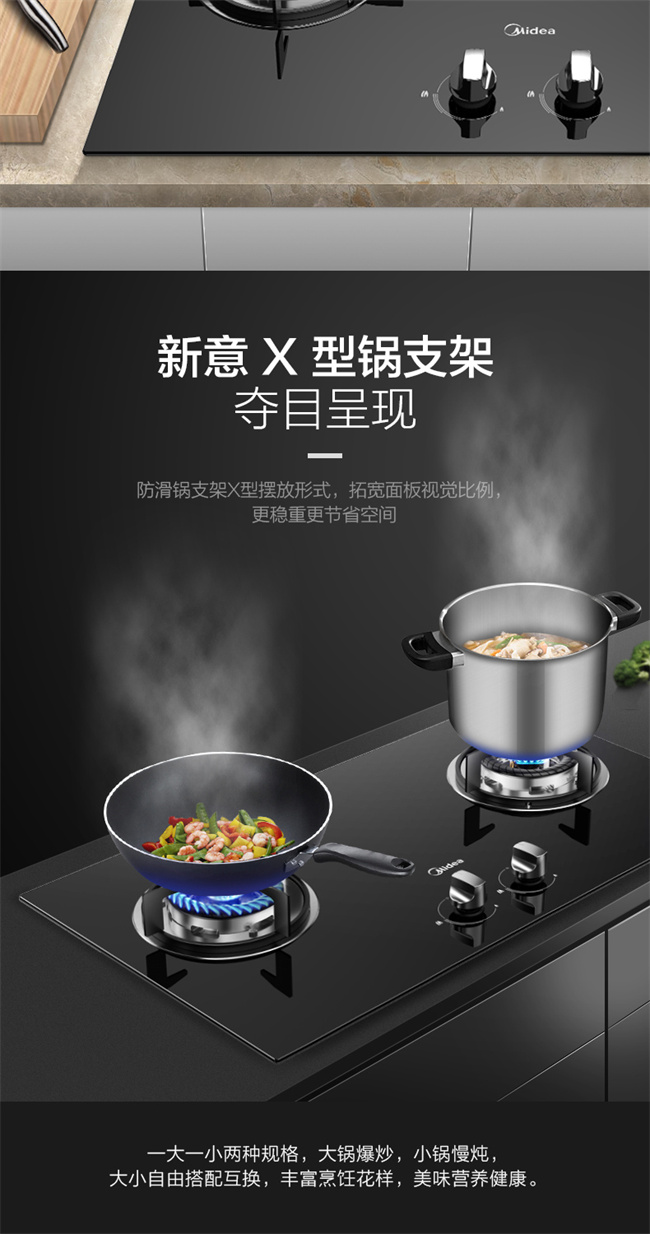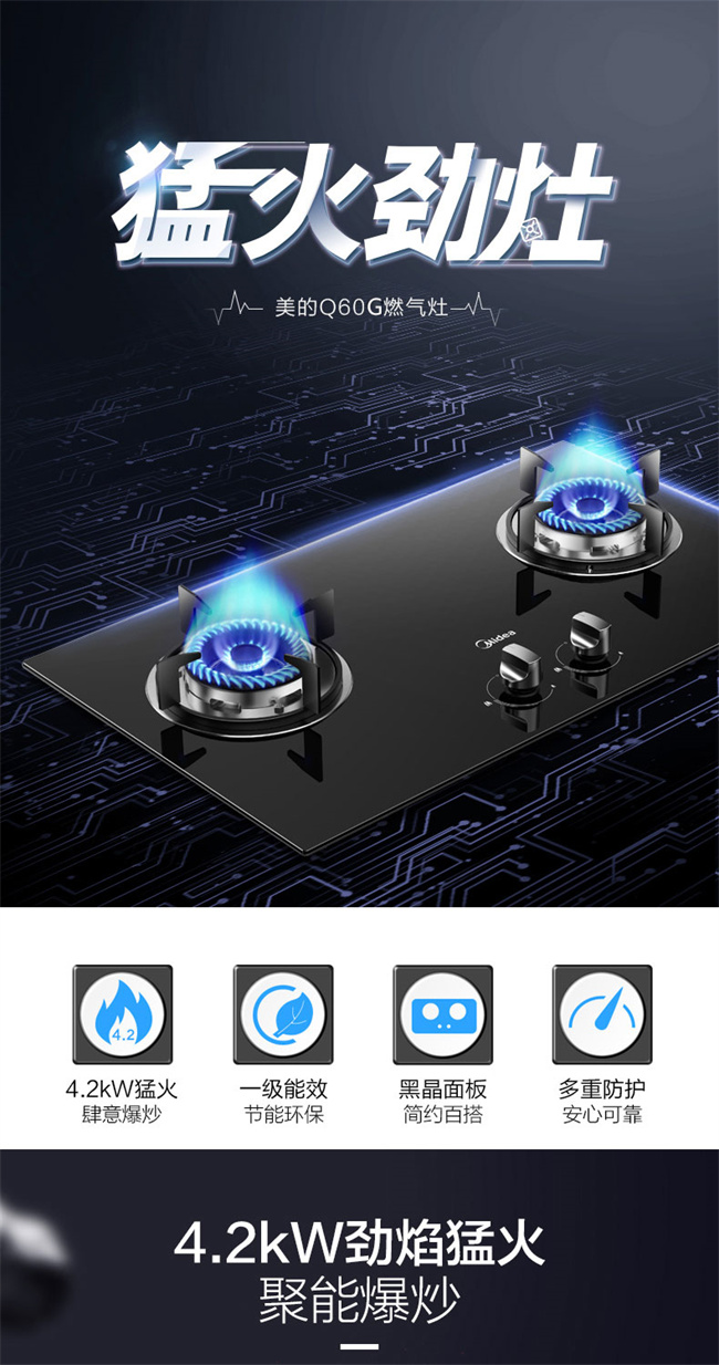 JZT-Q60G 天然气 4.2KW双眼灶 台嵌两用燃气灶 1级能效