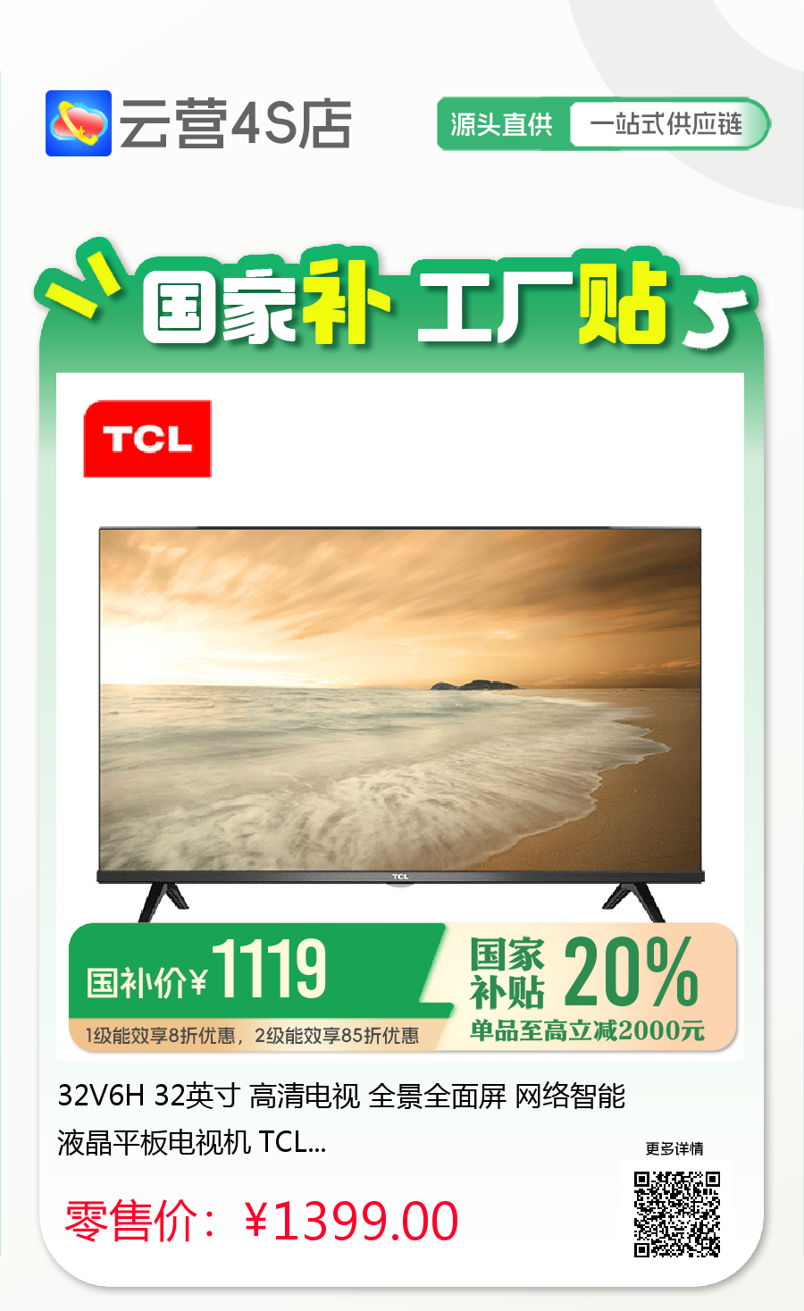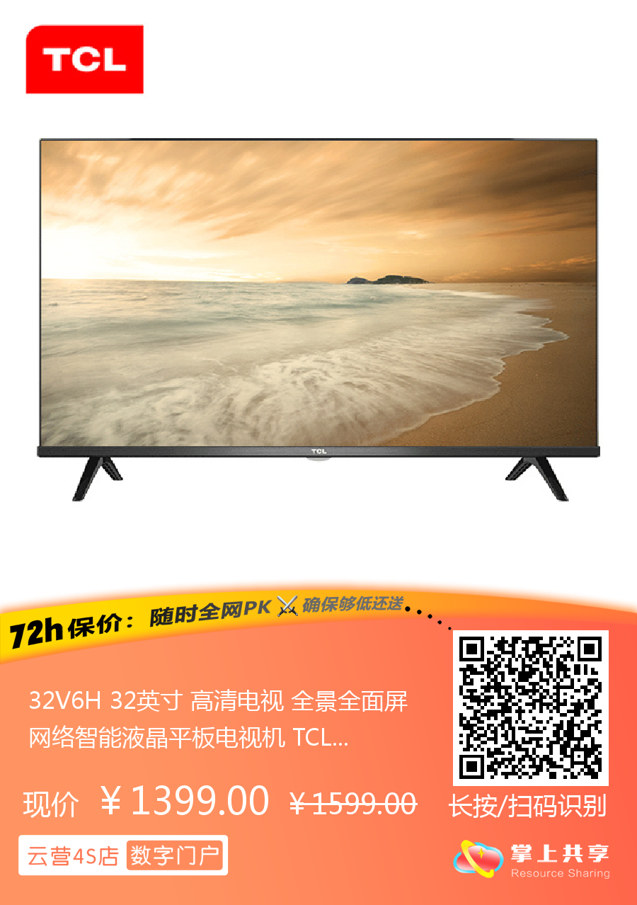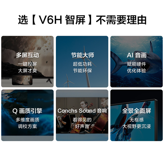 32V6H 32英寸 高清电视 全景全面屏 网络智能液晶平板电视机 TCL