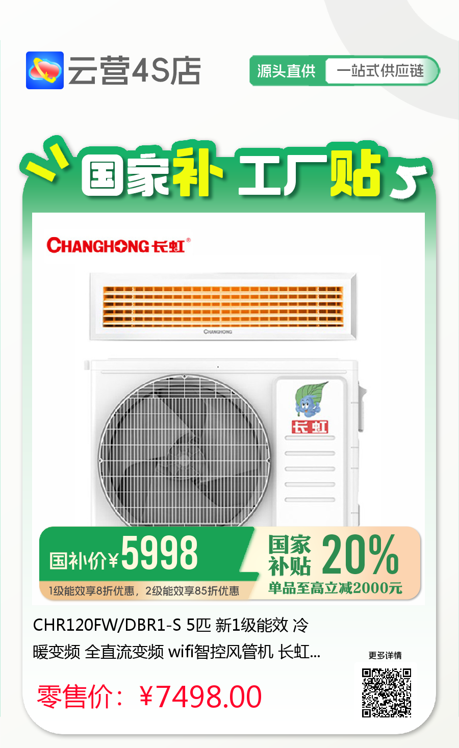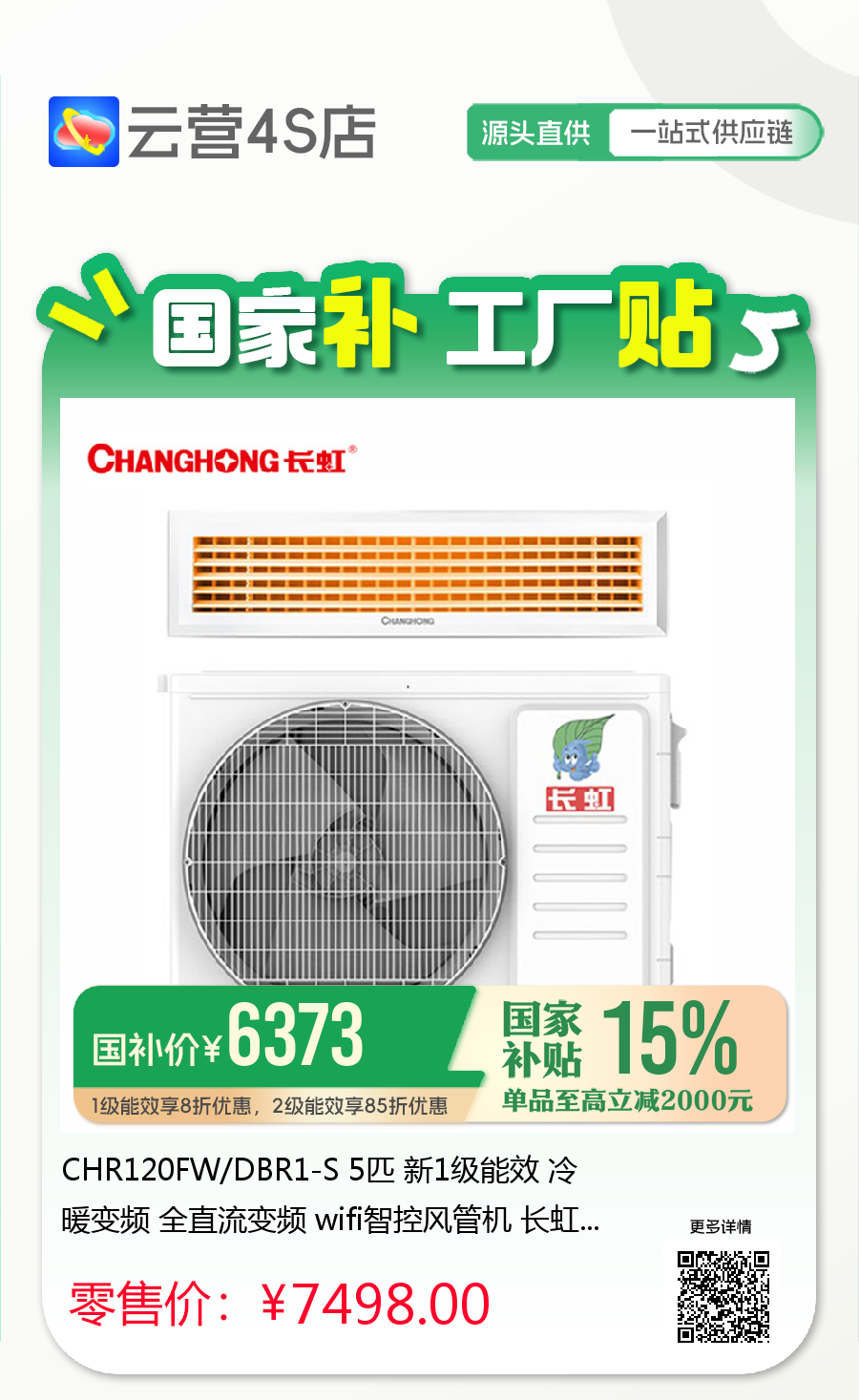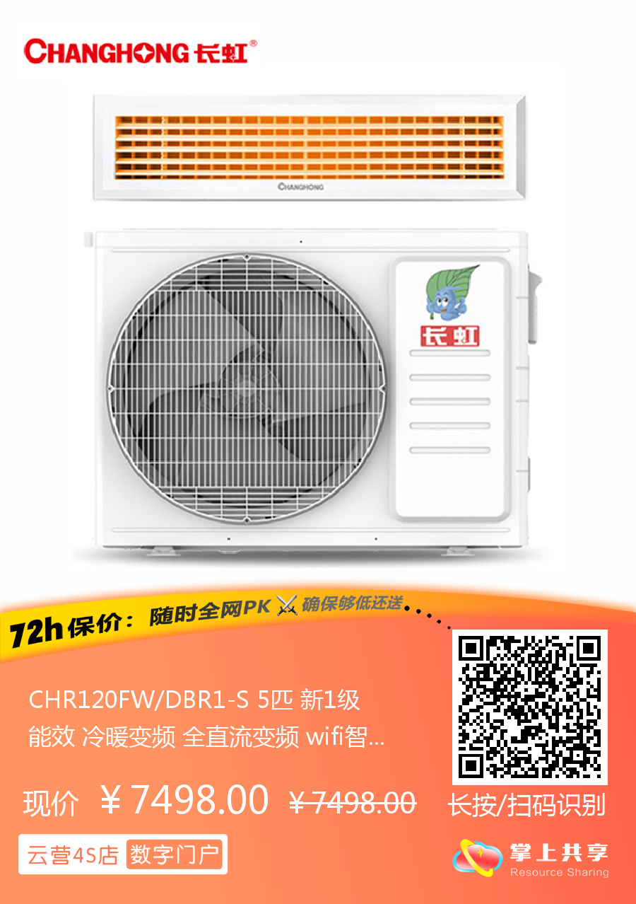 CHR120FW/DBR1-S 5匹 新1级能效 冷暖变频 全直流变频 wifi智控风管机 长虹