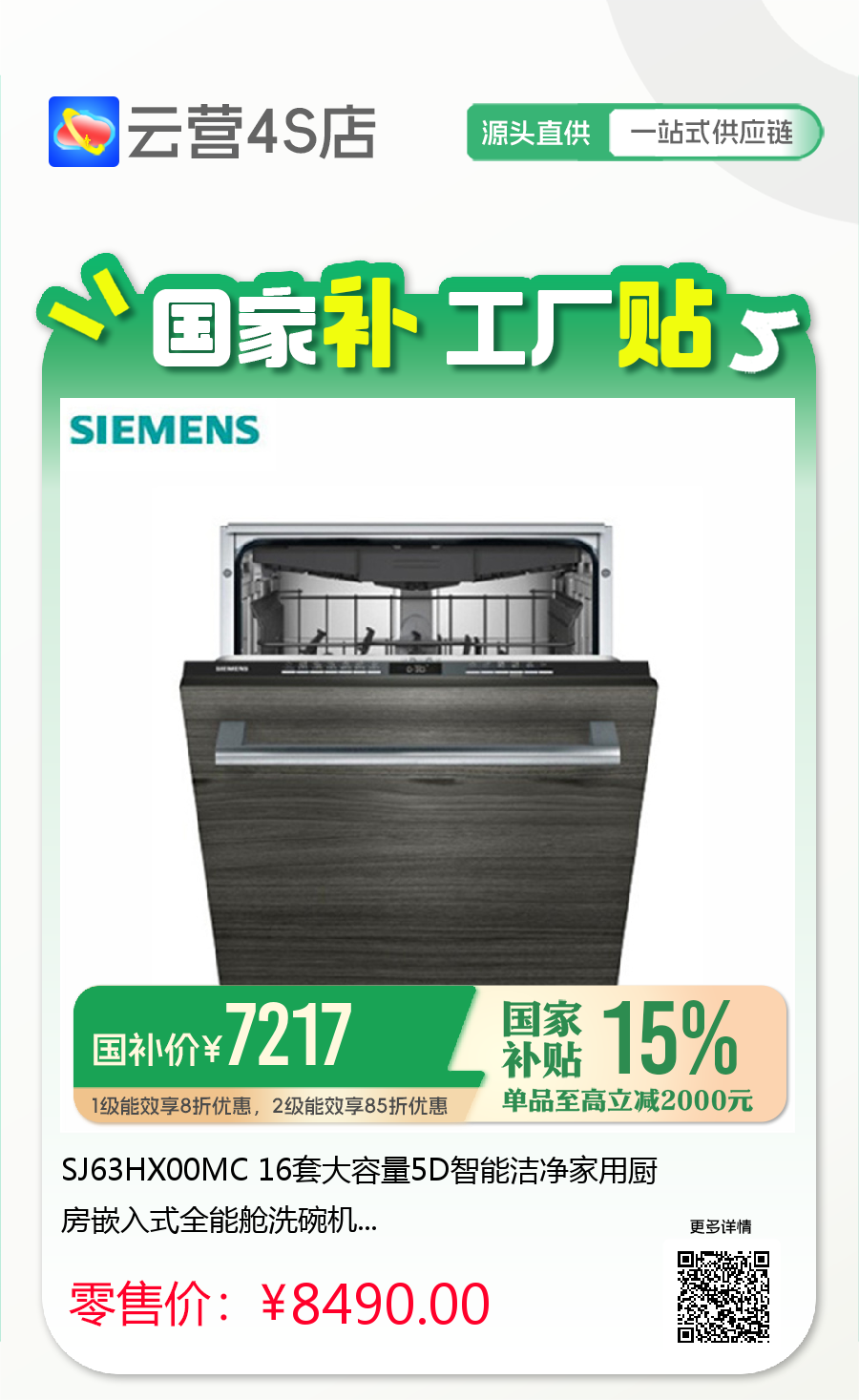 SJ63HX00MC 16套大容量5D智能洁净家用厨房嵌入式全能舱洗碗机