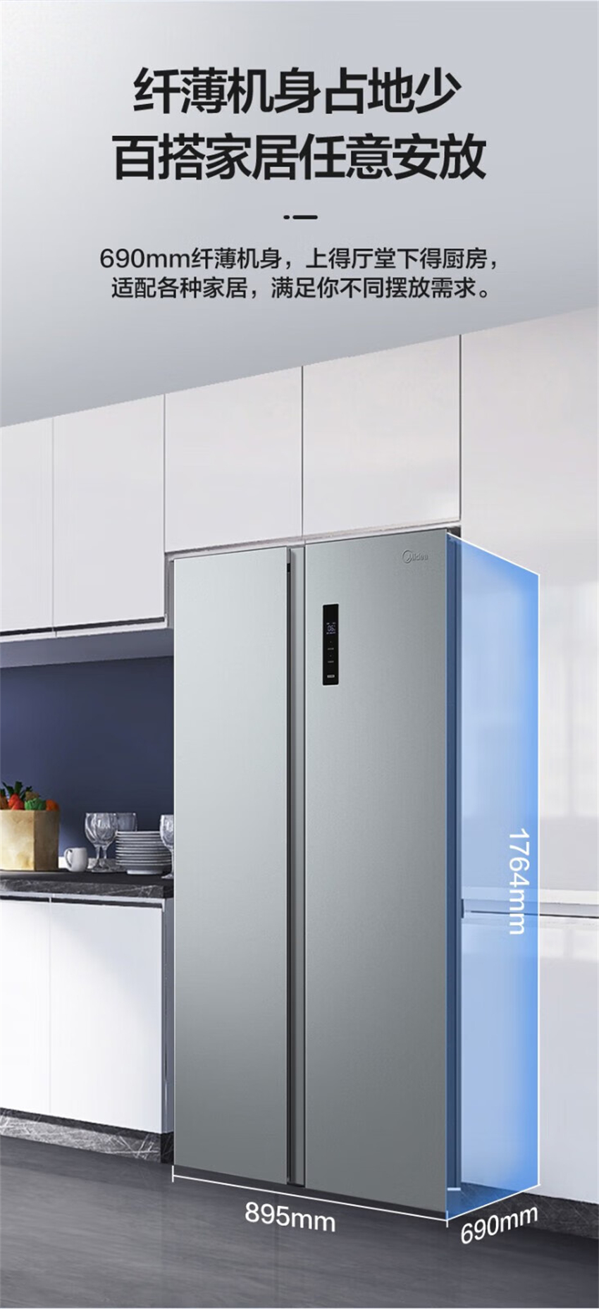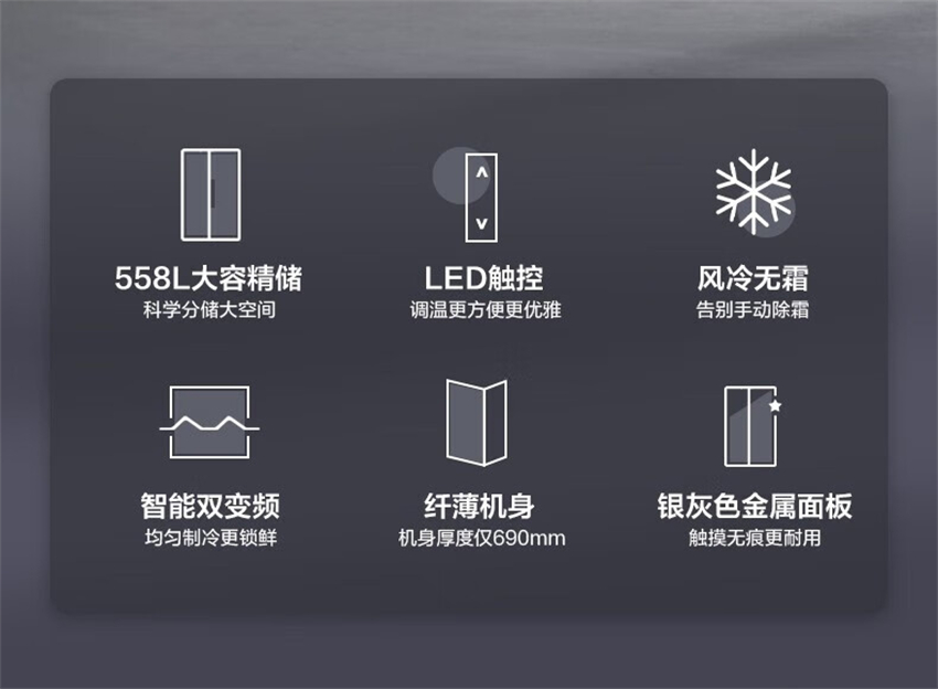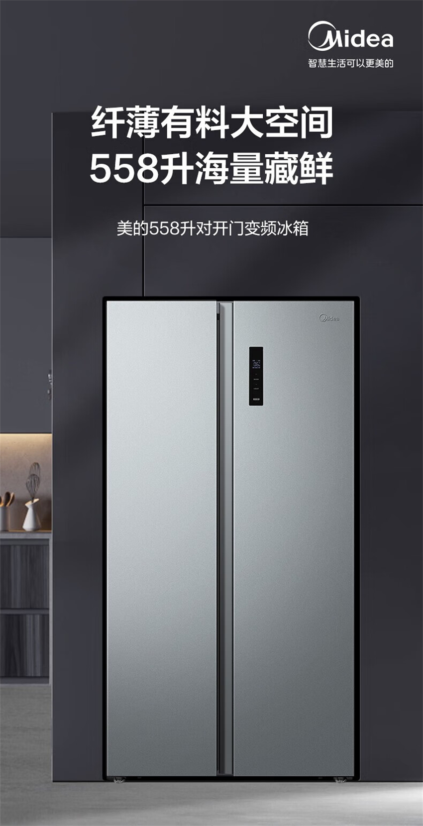 BCD-558WKPM(E) 钛钢灰-星烁 558升 风冷无霜 变频 对开门冰箱 1级能效 美的(Midea)