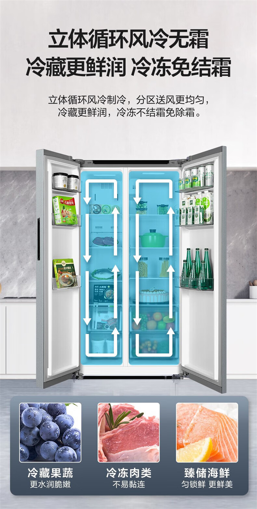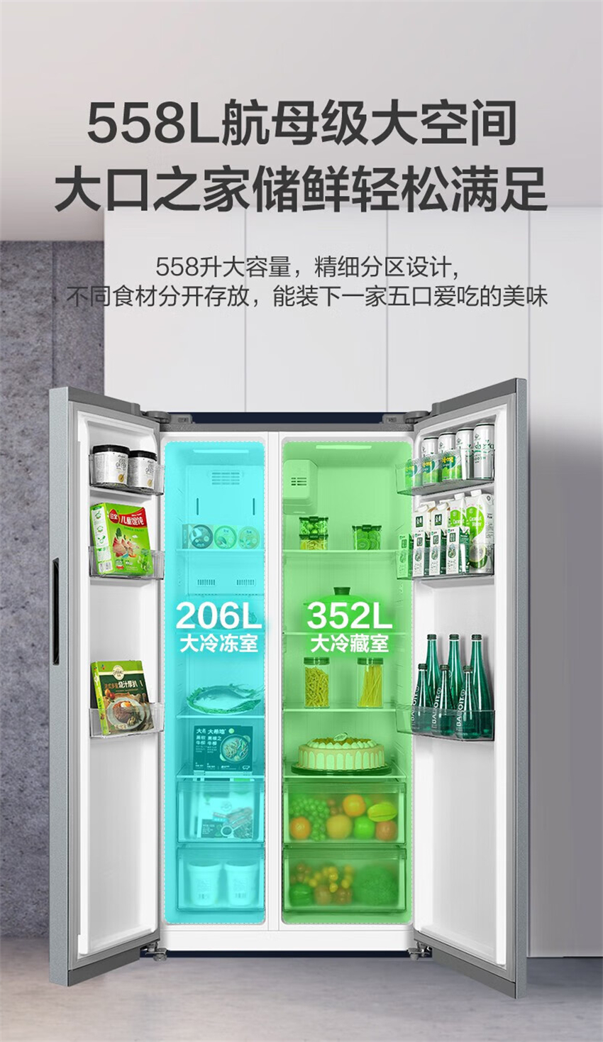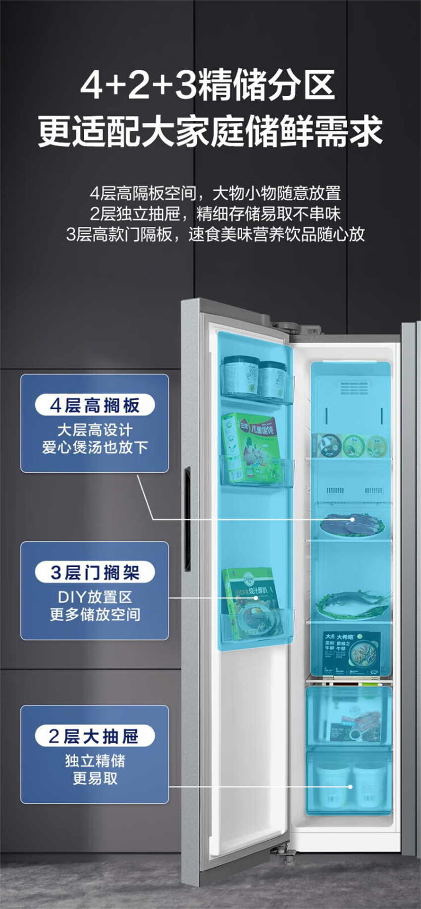 BCD-558WKPM(E) 钛钢灰-星烁 558升 风冷无霜 变频 对开门冰箱 1级能效 美的(Midea)