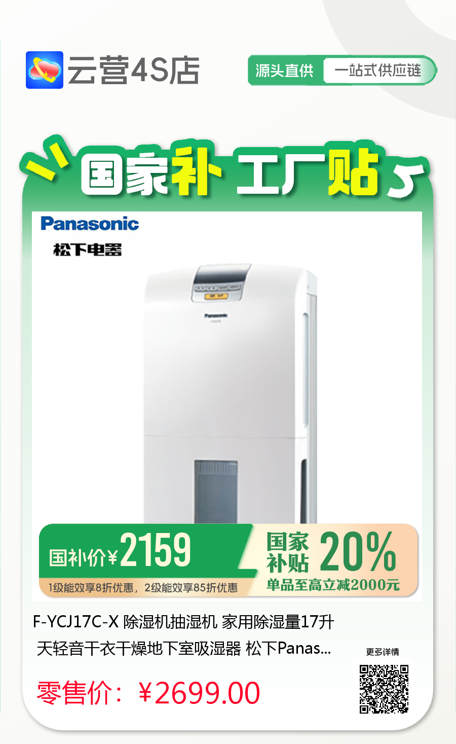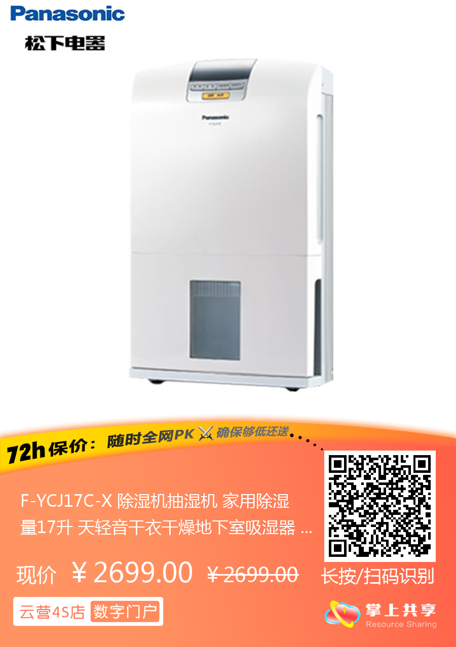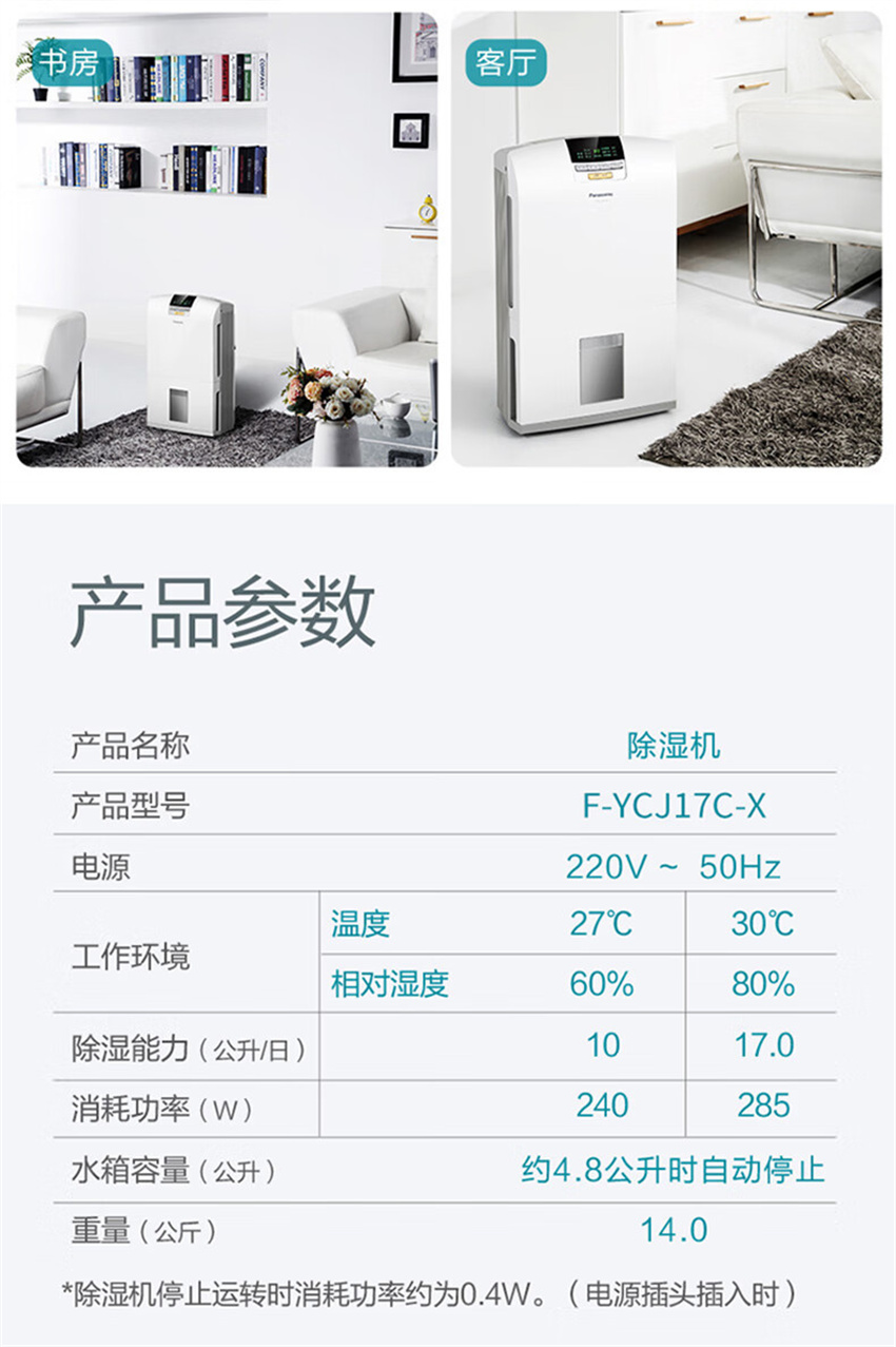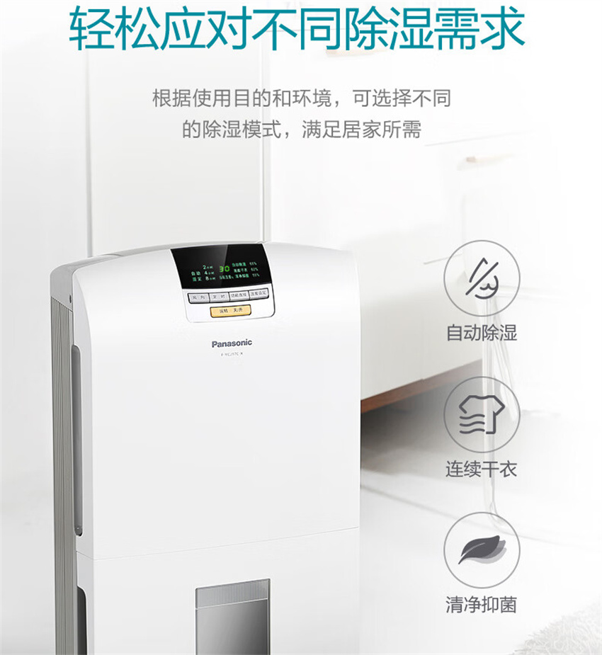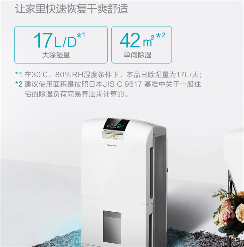 F-YCJ17C-X 除湿机抽湿机 家用除湿量17升 天轻音干衣干燥地下室吸湿器 松下PanasonicF