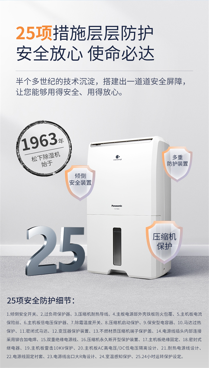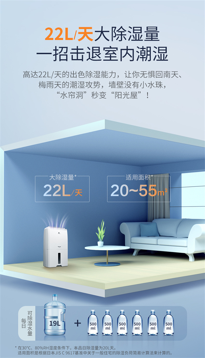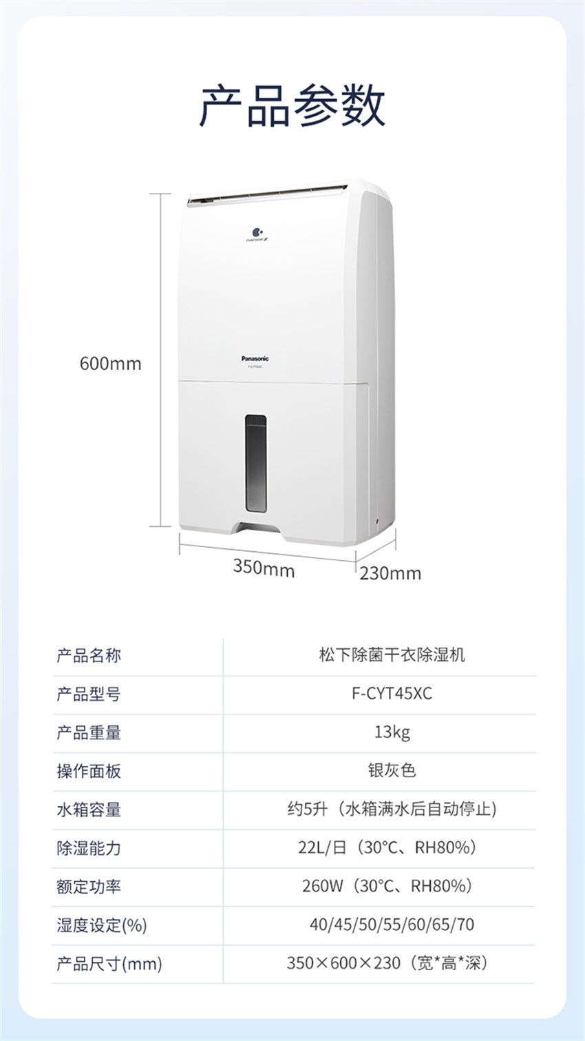 F-CYT45XC 除湿机抽湿机 日除湿22L 家用卧室客厅地下室 干衣适用面积2055 松下Panasonic