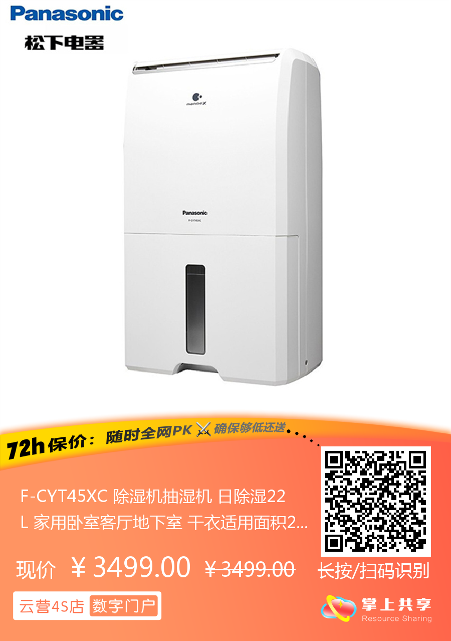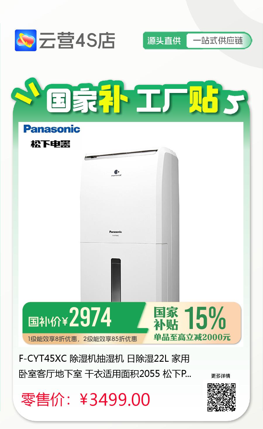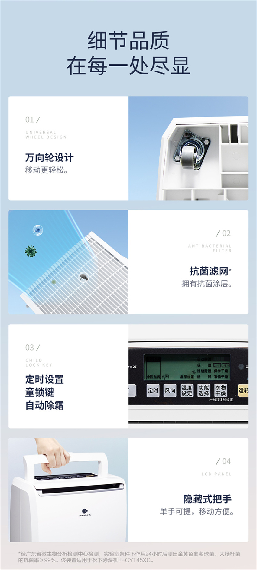 F-CYT45XC 除湿机抽湿机 日除湿22L 家用卧室客厅地下室 干衣适用面积2055 松下Panasonic