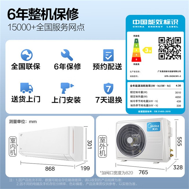 美的 1.5匹挂机 智行III 新3级能效 冷暖变频空调 KFR-35GW/M1-3